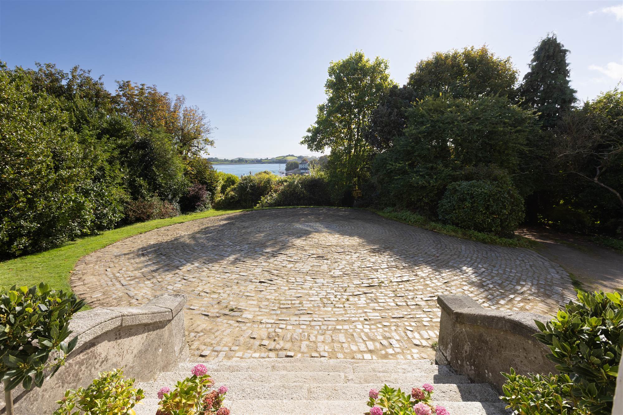 The first floor offers two beautifully proportioned king-sized bedrooms and a third double bedroom or study, a formal drawing room, ornate cornicing and stunning sea views across Strangford Lough and the house"s private gardens.