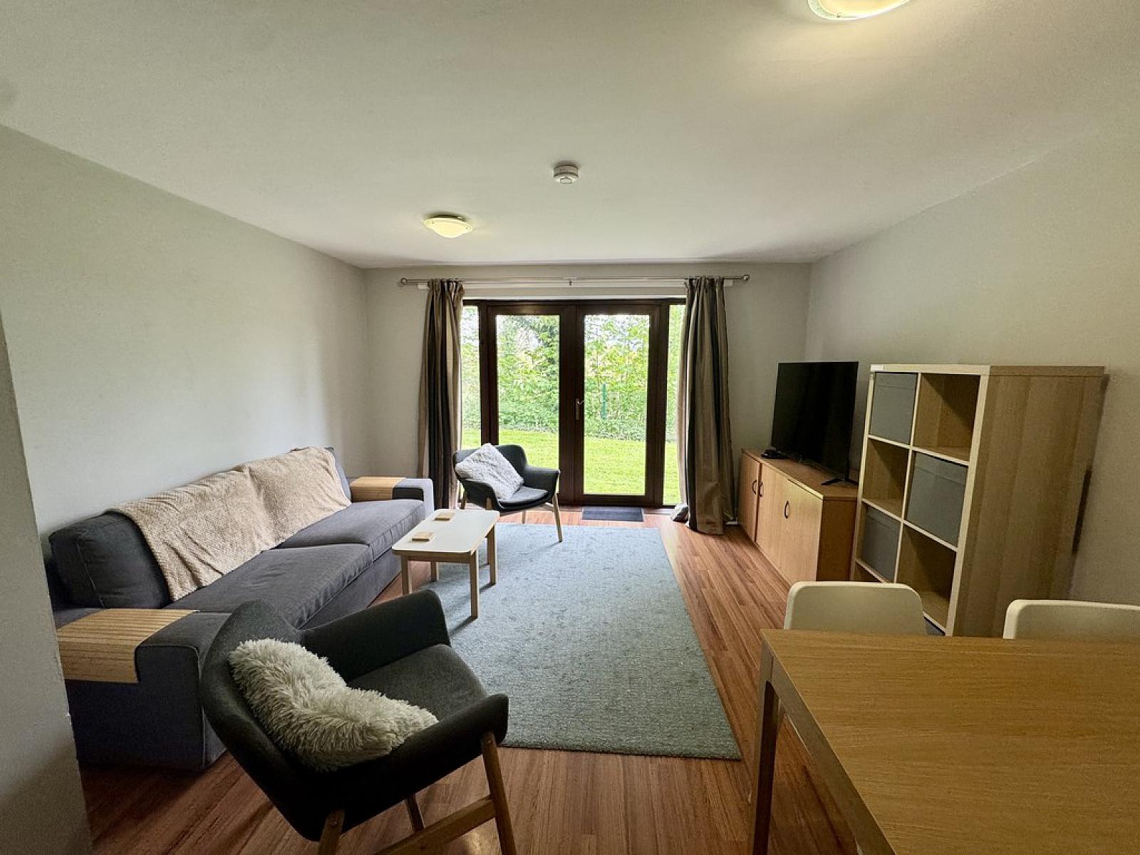 Spacious Living & Dining Room with Patio Doors Overlooking River Lagan