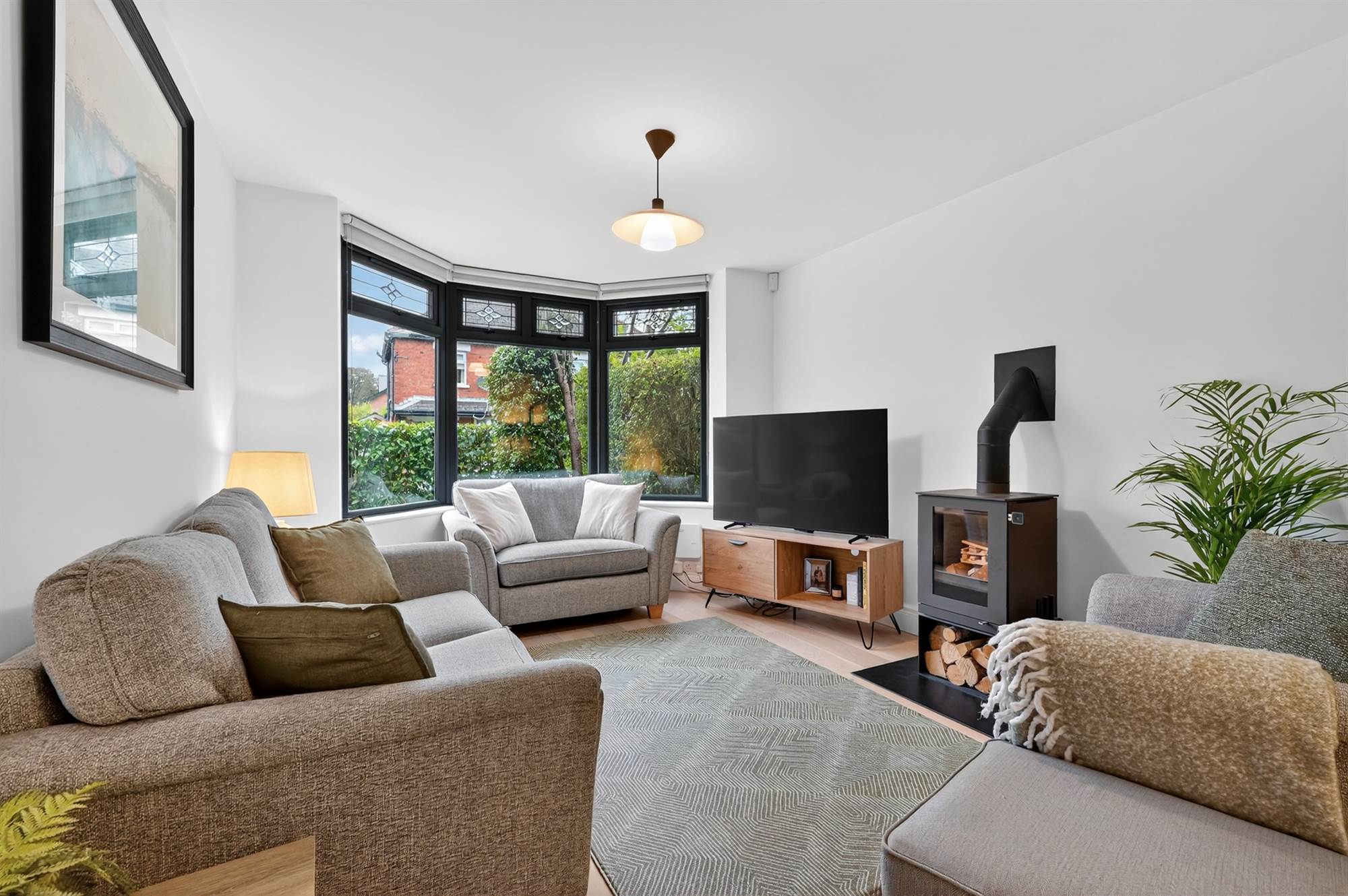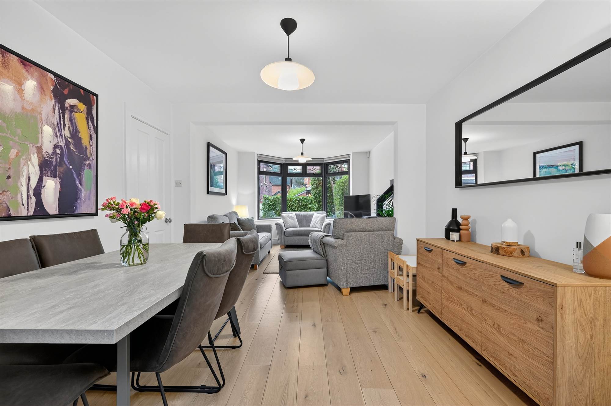 Spacious Lounge Open Plan to Living Room with Feature Fireplace and Bay Window