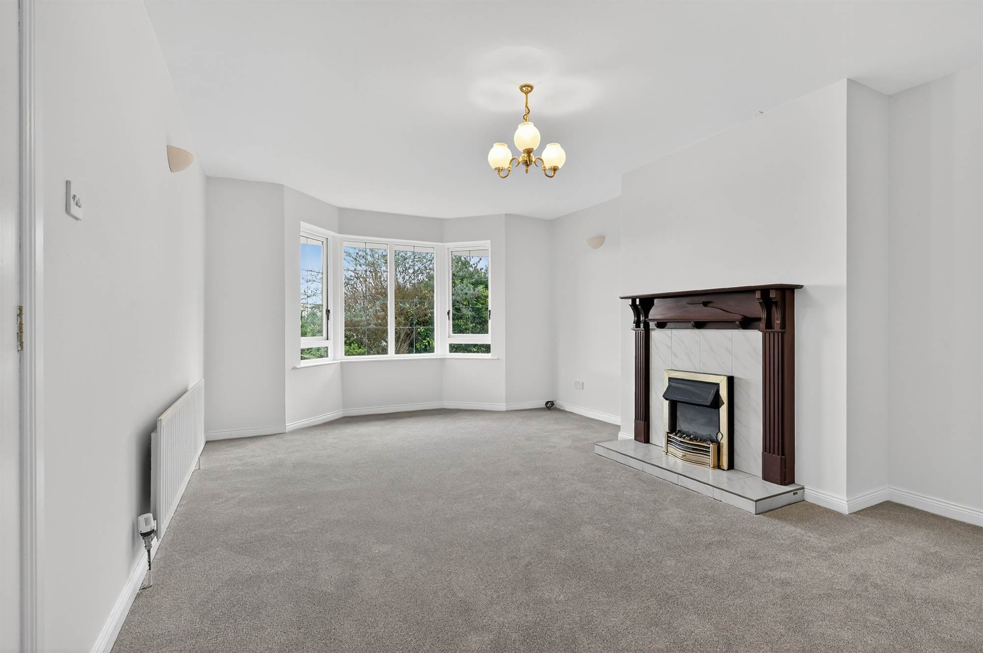 (at widest points). Mahogany fireplace with tiled inset and hearth, bay window.
