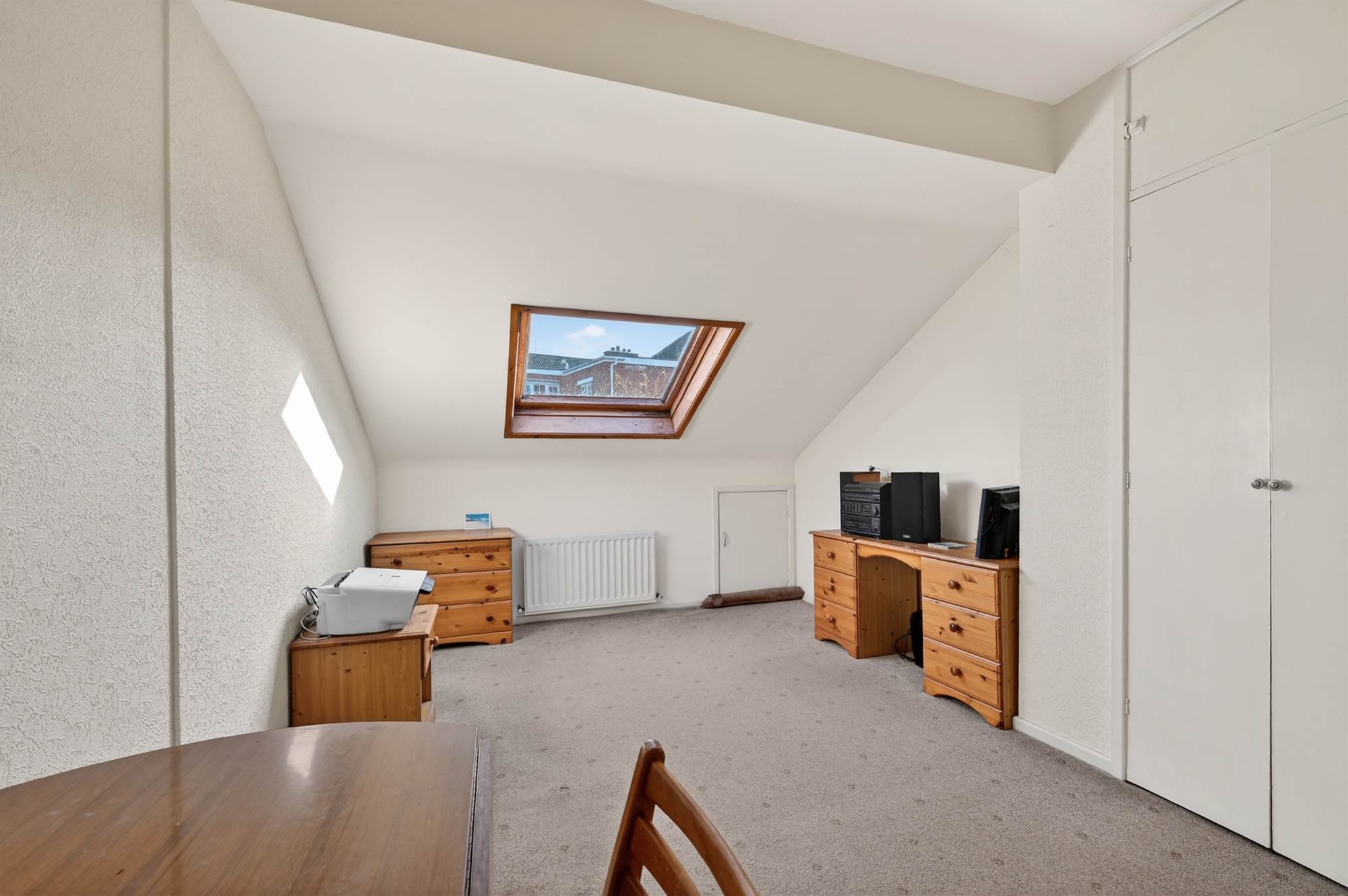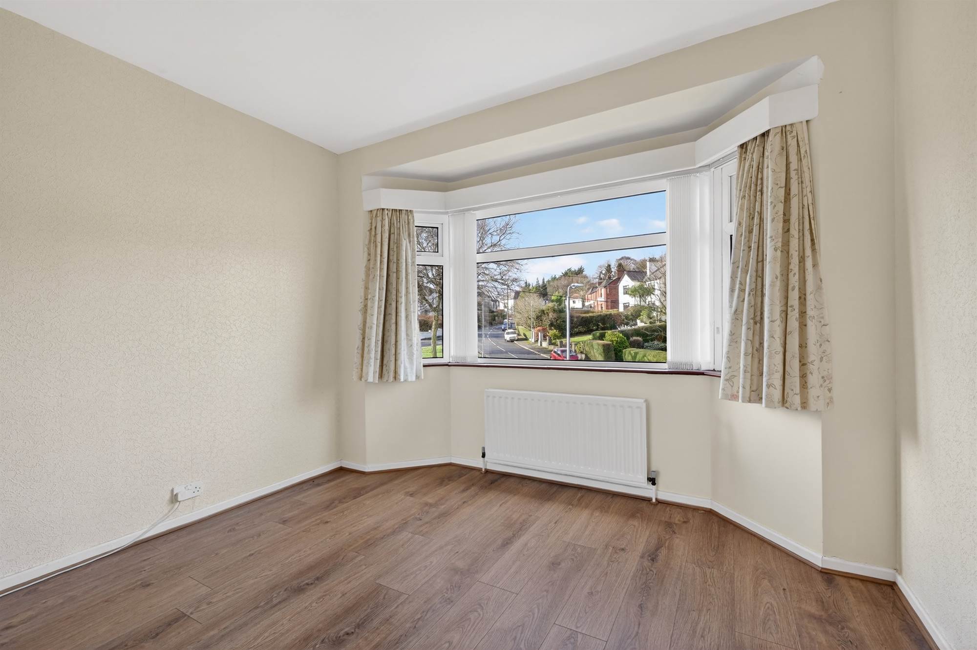 Fireplace with electric fire, tiled hearth, cornice ceiling, bay window.