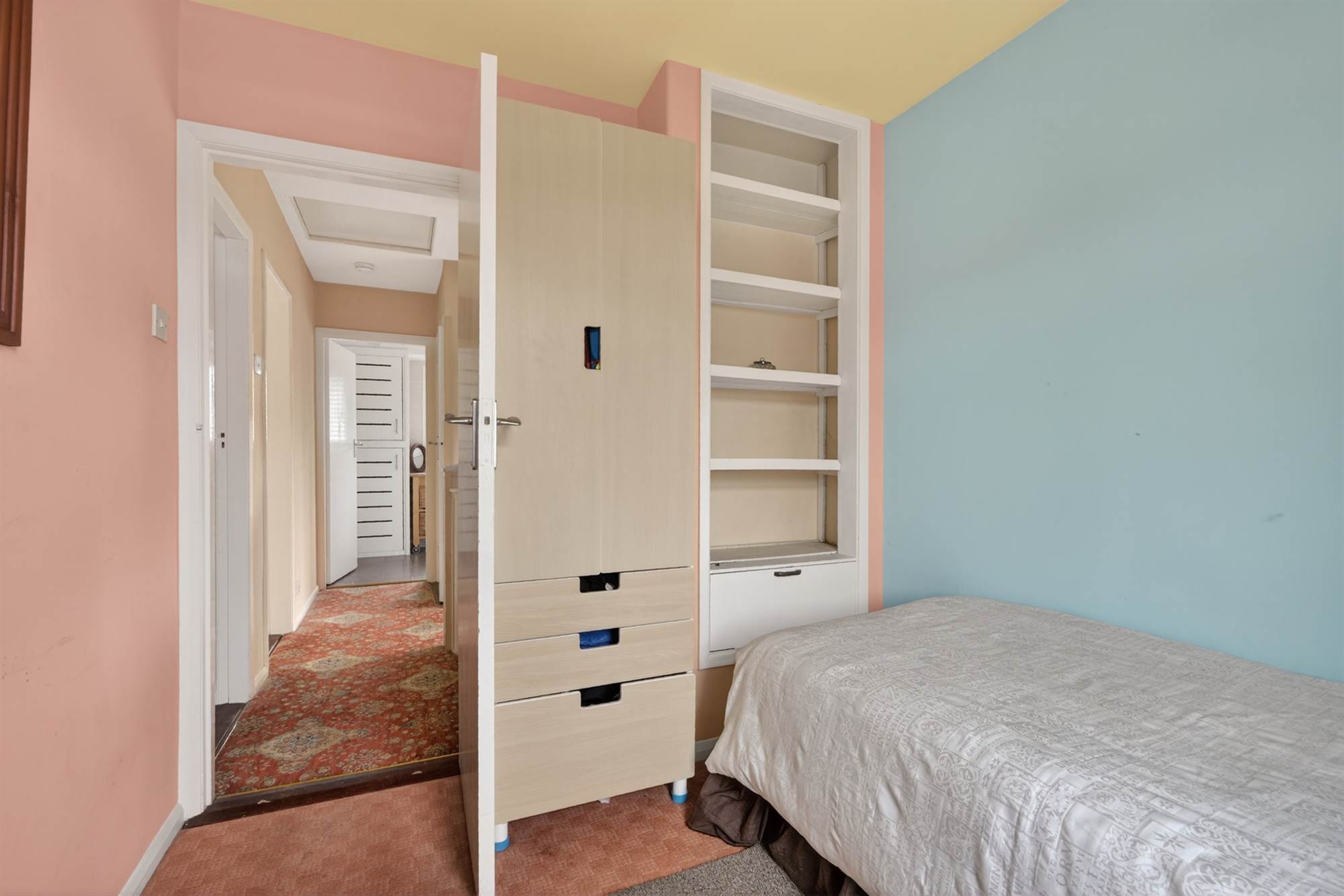 At widest points. Built in cupboard.
