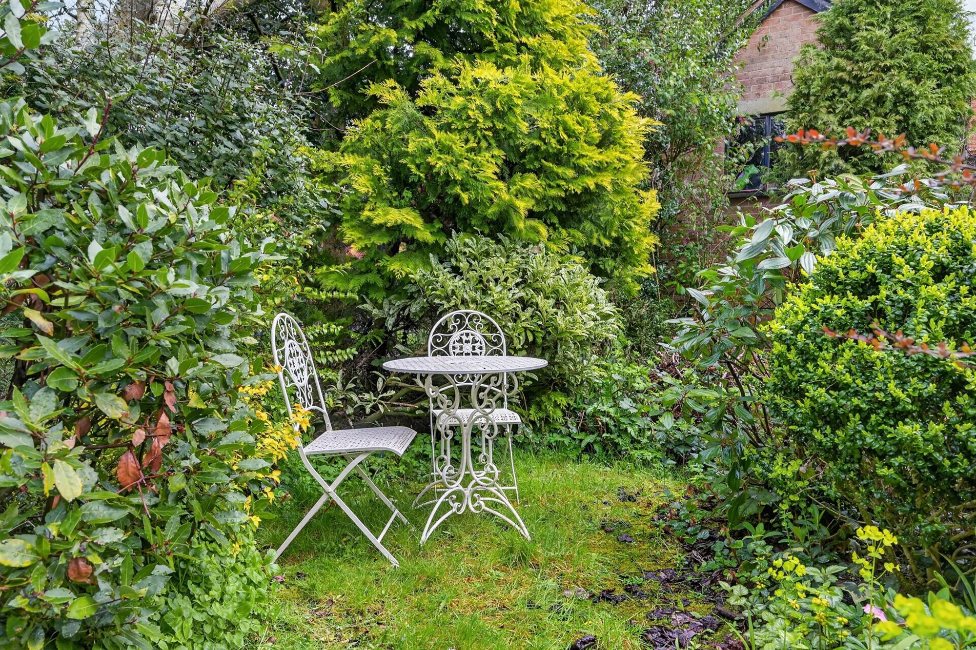 Spacious Rear Gardens in Lawns with Paved Patio and Boundary Hedging