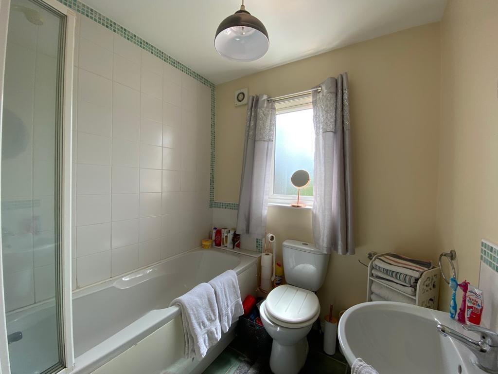 Comprising bath with electric shower over and tiling around, shower screen, whb and wc, tiled floor.