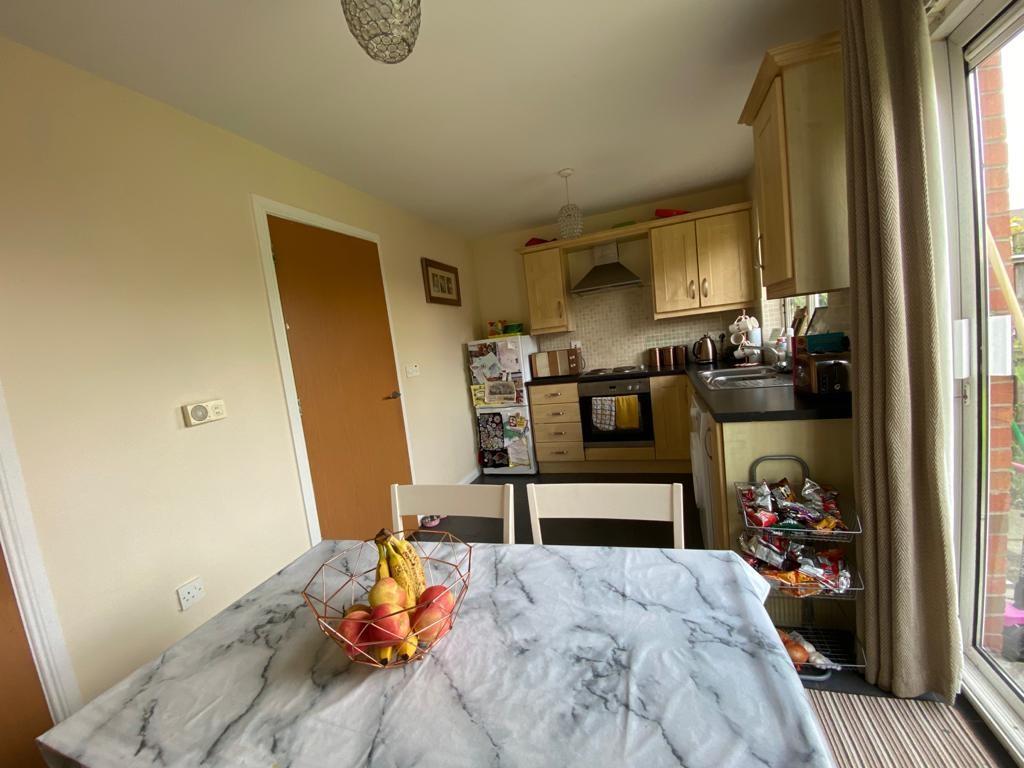 Having eye and low level units, tiling between units, 1 1/2 bowl stainless steel sink unit with mixer taps, hob, underoven, stainless steel extractor hood, plumbed for washing machine, space for fridge / freezer, dining space, tiled floor, patio doors leading to rear.