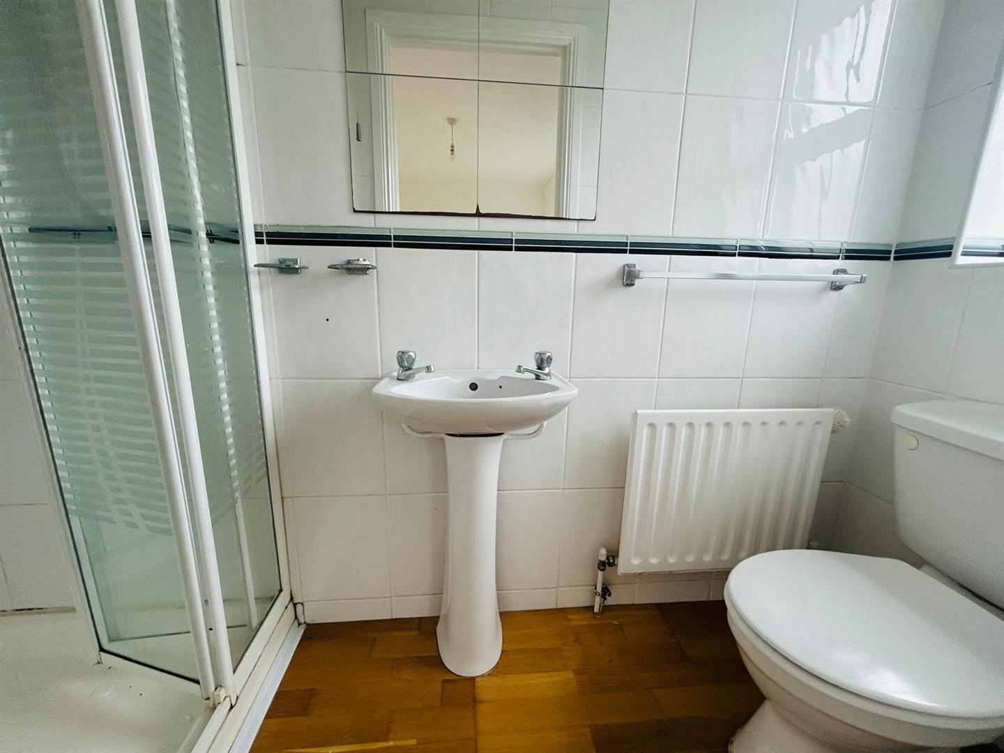 Comprising fully tiled walk in electric shower, whb and wc, fully tiled walk in electric shower, extractor fan, fully tiled walls, wooden floor.