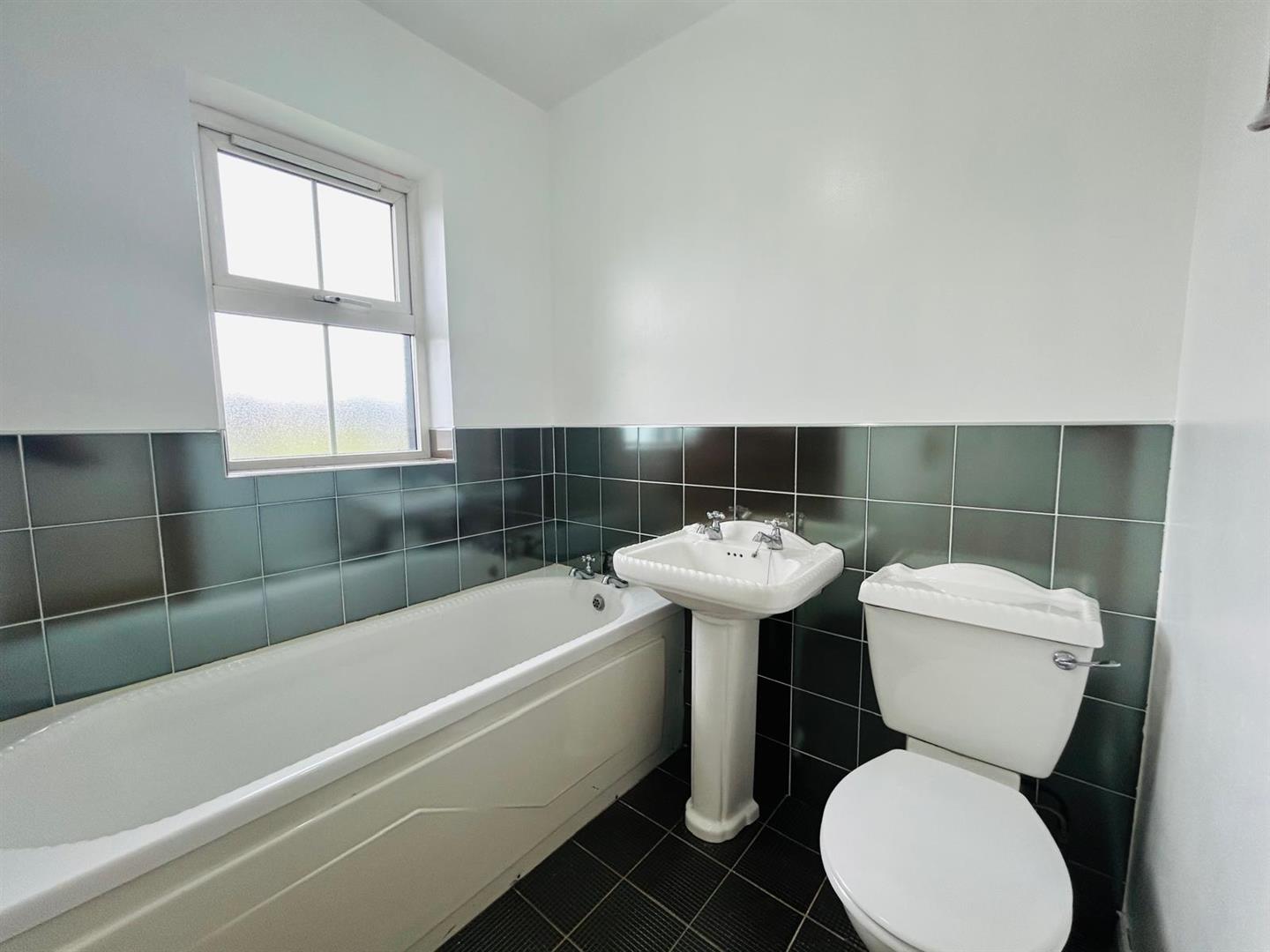 Comprising bath, whb & wc, extractor fan, partly tiled walls and tiled floor.