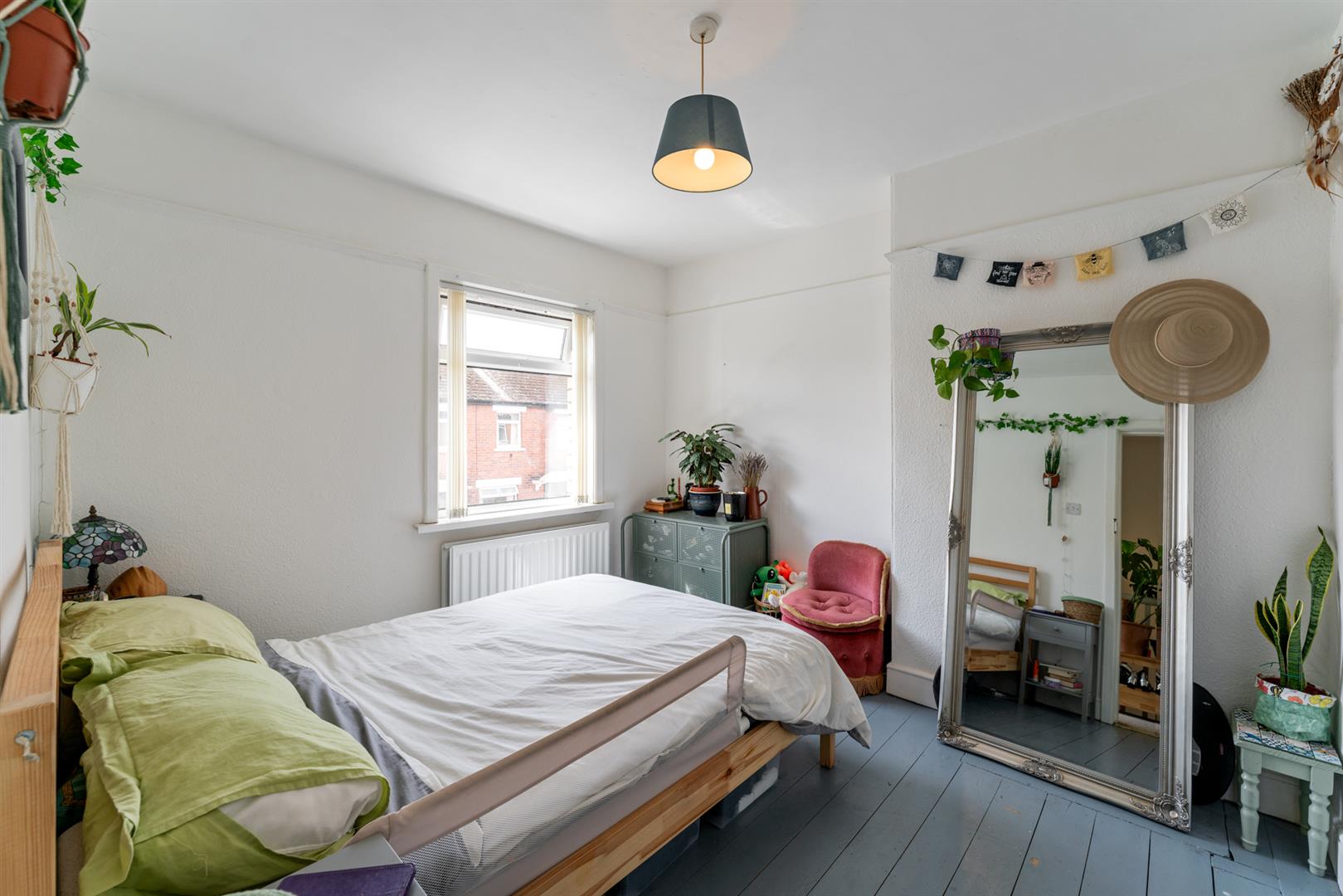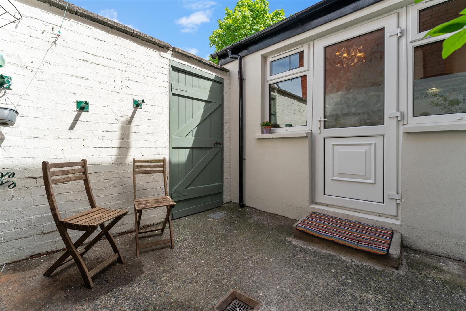 Small front garden and enclosed rear yard.