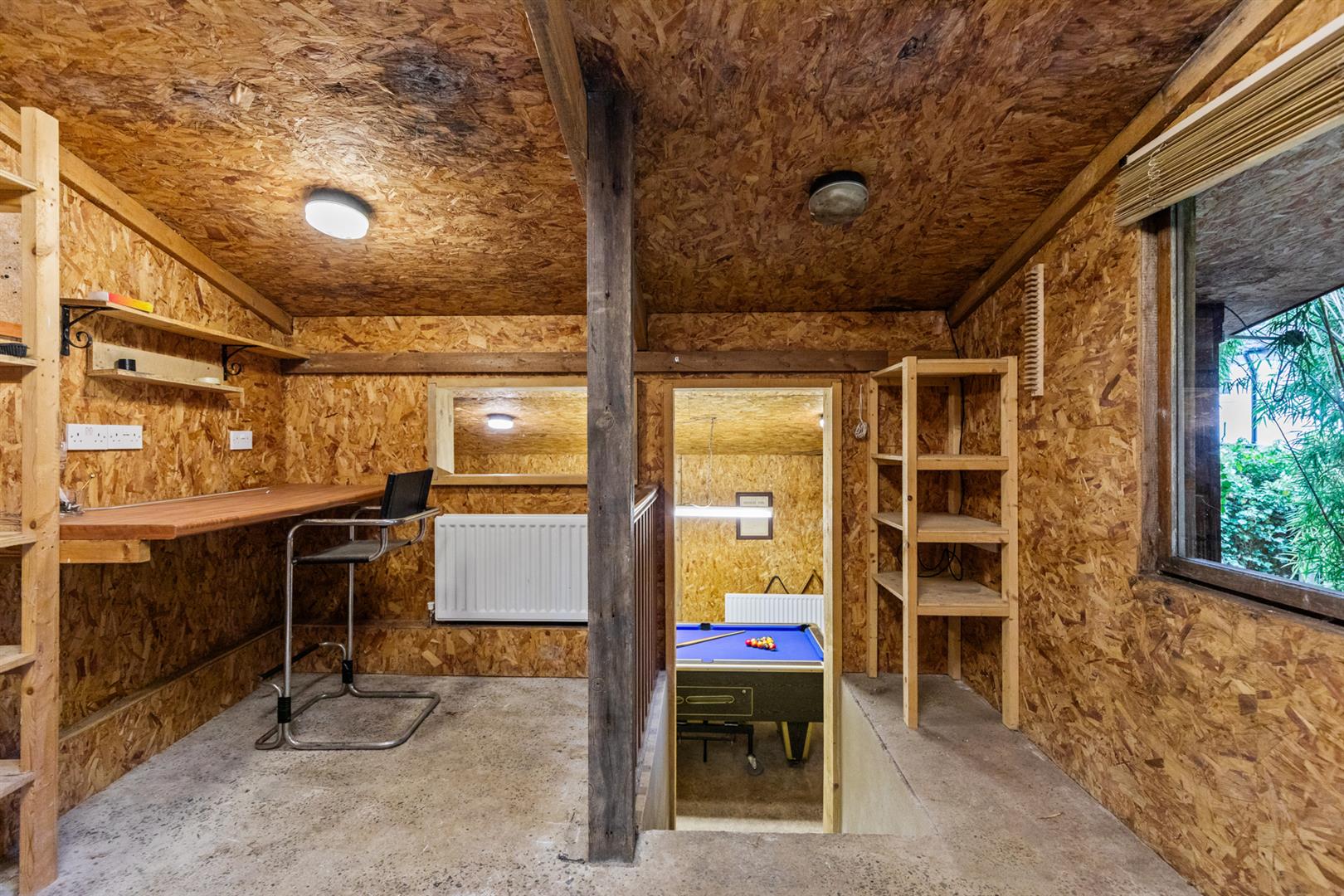 Dual aspect Velux windows, built in storage.