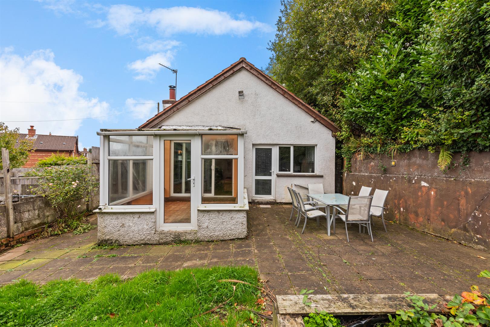 The accommodation has been updated over the years to provide significantly more space throughout. Upon entry, the entrance hall leads to a spacious lounge with a conservatory, a recently fitted kitchen featuring a breakfast bar, and three bedrooms, one of which is currently used as a dining room, as well as a bathroom suite. Furthermore, the current owners have extended into the roofspace with a permanent staircase to create three additional areas, which will be a great benefit to the new owners. The outside features a good-sized garden with paved and lawn areas, leading to a BBQ area, and two large garden sheds joined to create additional outdoor space, currently used as a tool shed and games room.