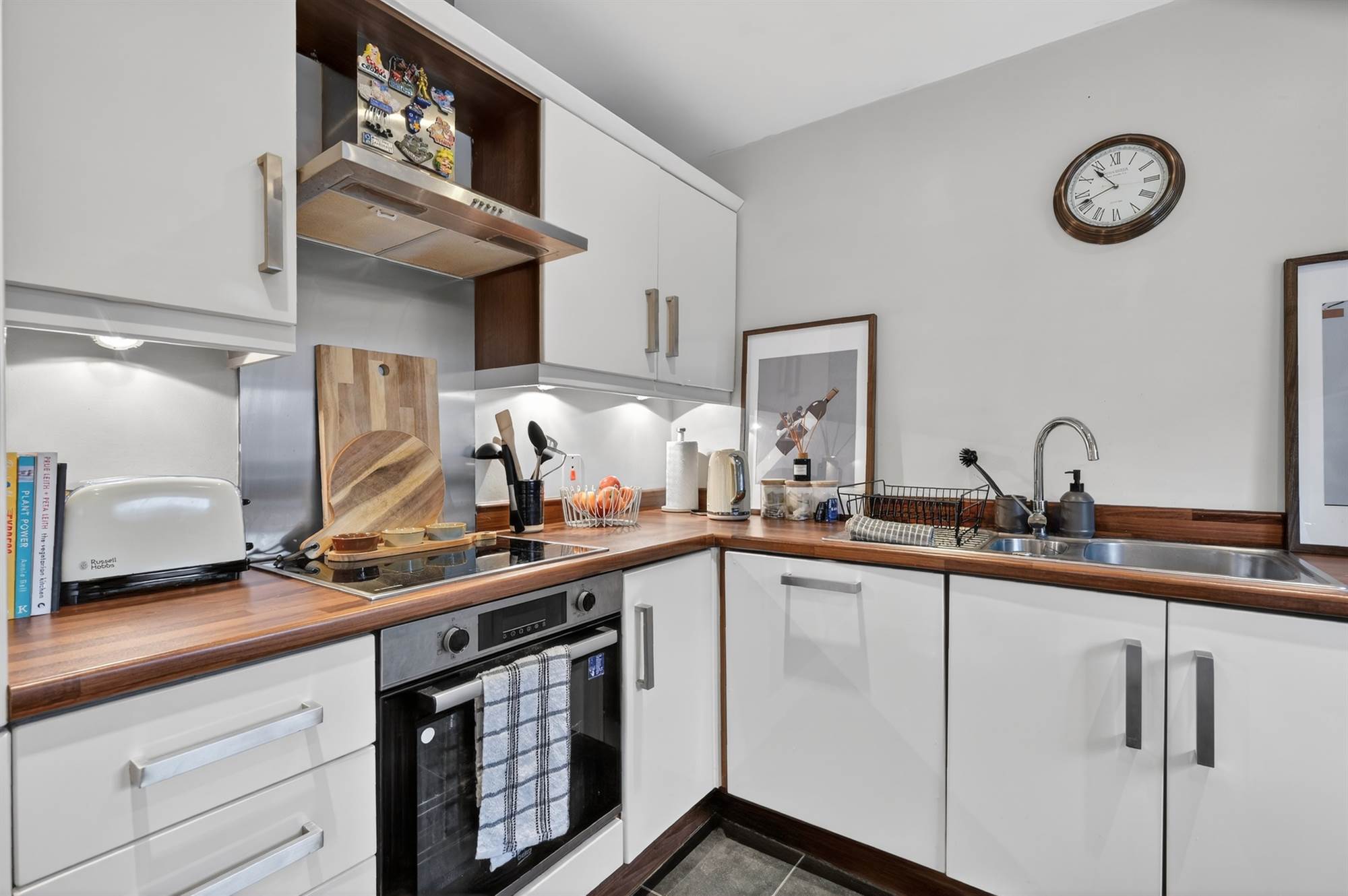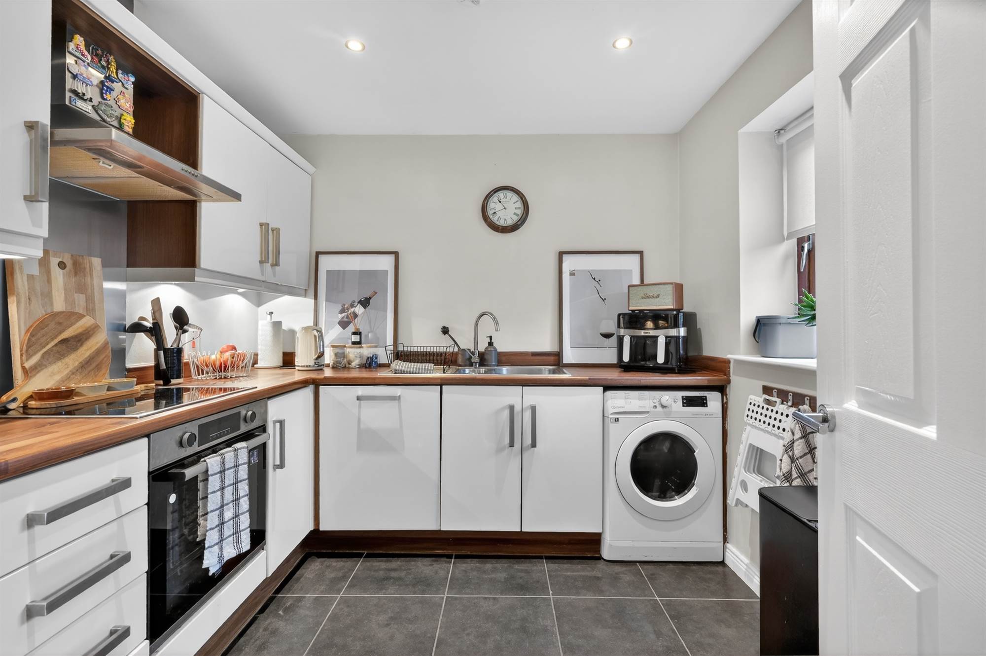 Separate kitchen with range of built in appliances