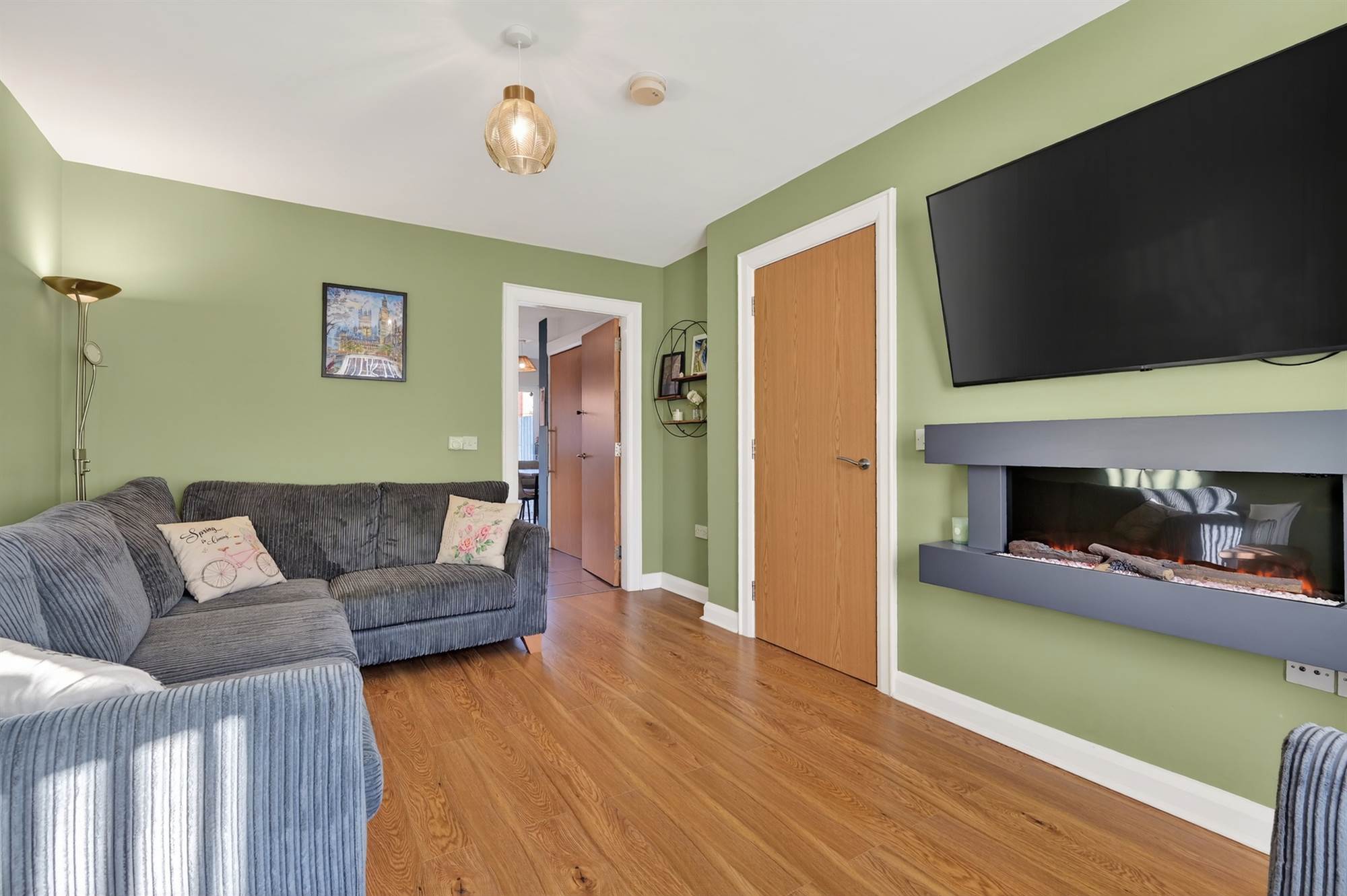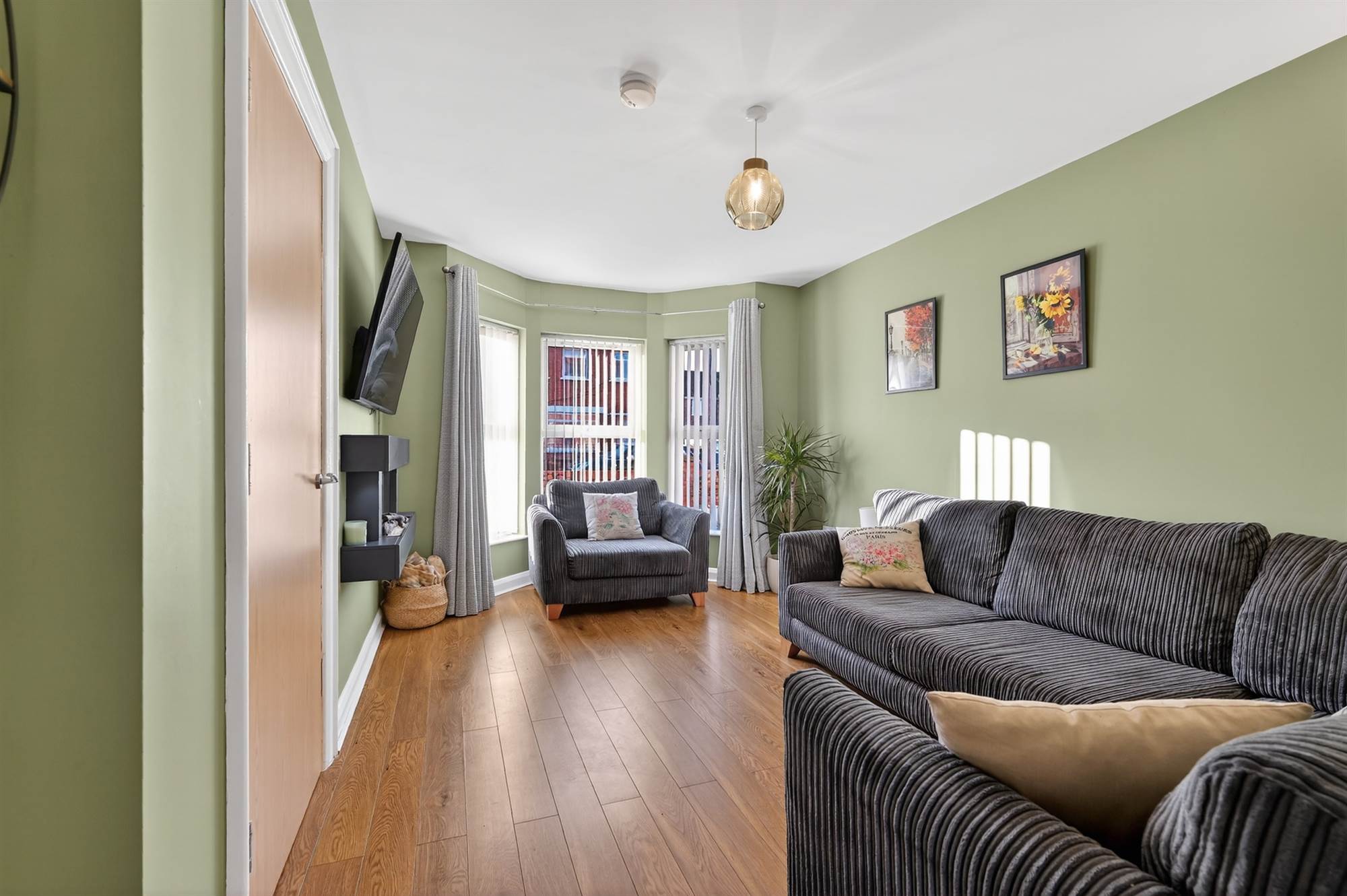 (into bay). Wood effect floor, feature electric fire.