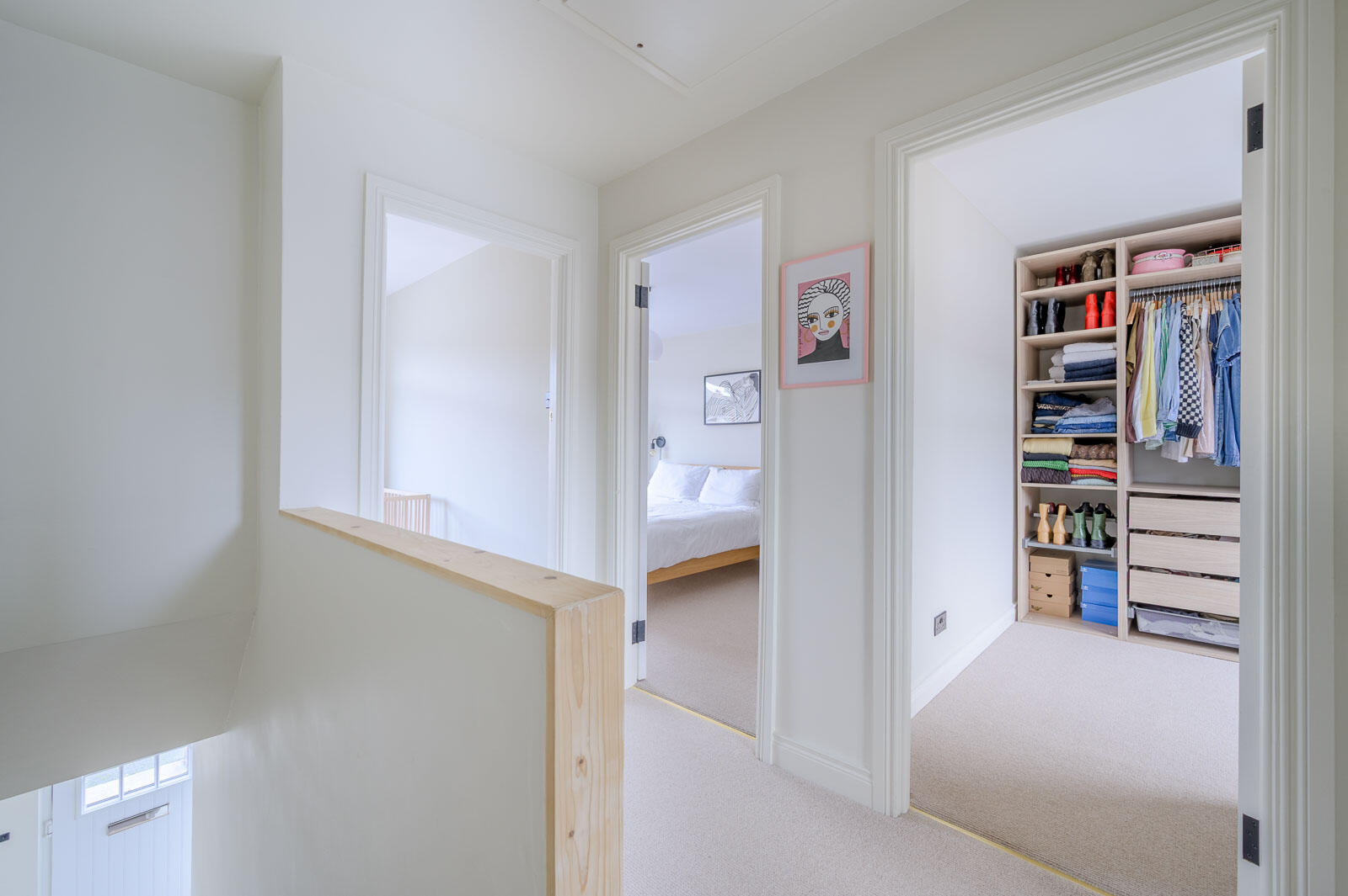 Outlook to front, built-in storage cupboard with access to Worcester Bosch gas boiler.