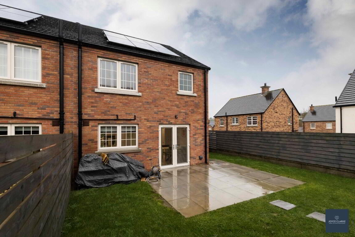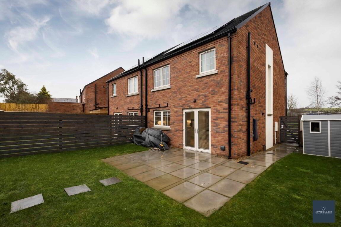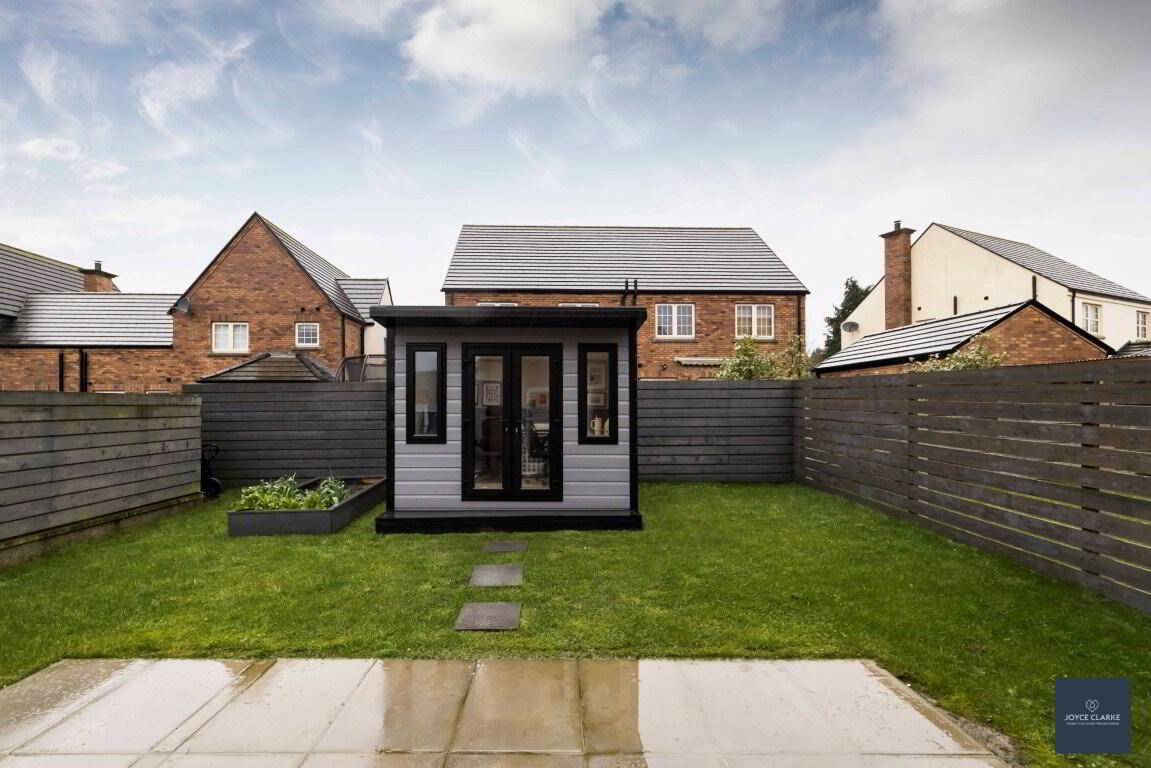 This is a great opportunity to purchase an "A" energy rated property ensuring maximum efficiency throughout the home! This beautifully presented semi detached home is brimming with high end finishes inside and out! Relax in the spacious living room, with multi fuel stove and beam mantle detail as the focal point, whilst the front aspect is towards the Green within the development. The kitchen is open plan to dining with an excellent range of high and low level storage units, complimented by an array of integrated appliances. Patio doors lead out onto the garden. A WC completes the ground floor. Upstairs you will find three well proportioned bedrooms, master with en suite shower room. The family bathroom comprises of a modern four piece suite to include separate shower and bath. Outside there is a fully enclosed garden laid in lawn to the rear. A paved patio area provides a welcoming space for entertaining. This sale includes a bespoke insulated garden room ideal for home office or recreation area. This has been tastefully finished and benefits from power, heat and lighting. Parking is via the tarmac driveway to the side. This beautiful home truly must be seen to fully appreciate just how good it is!