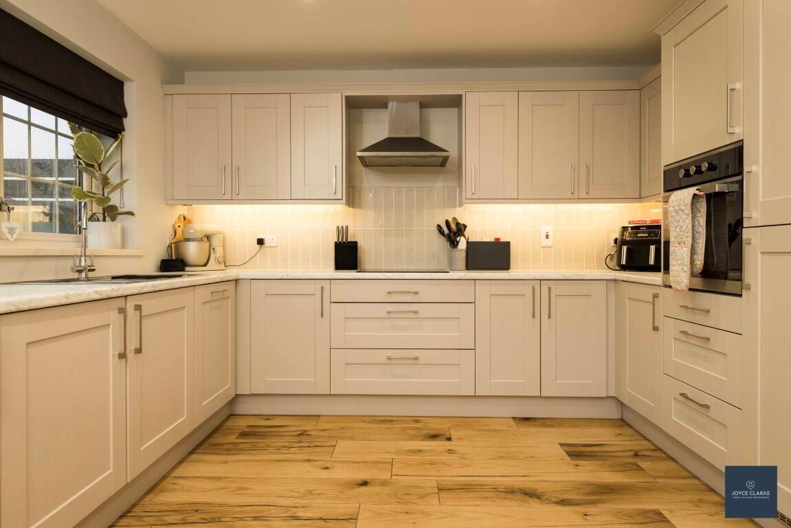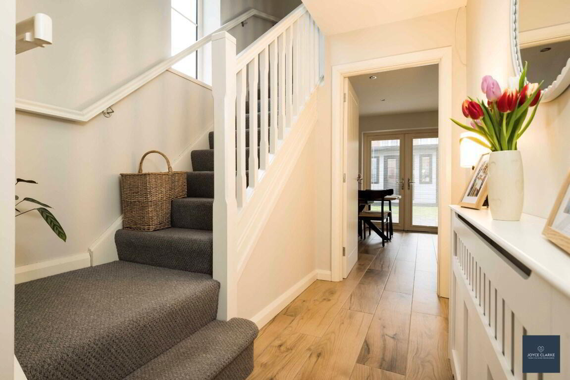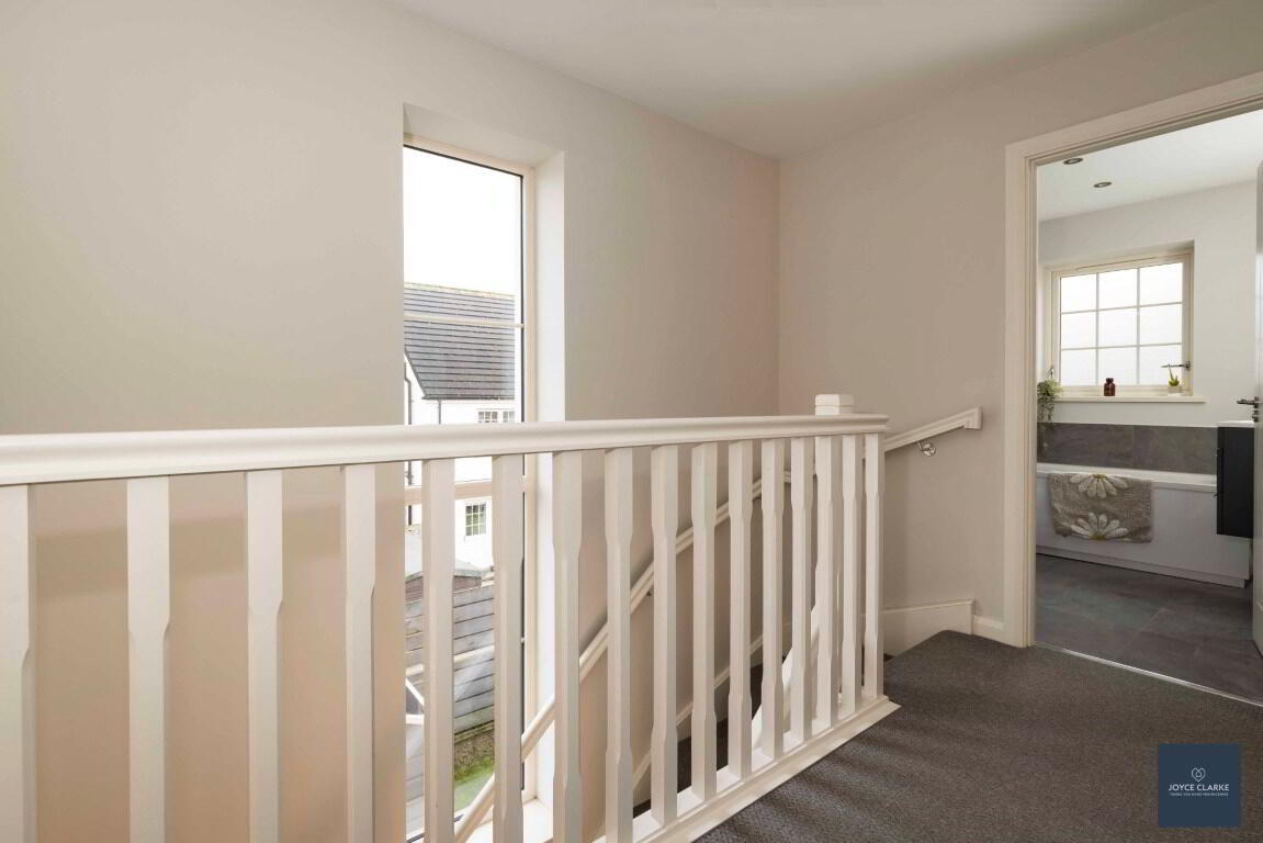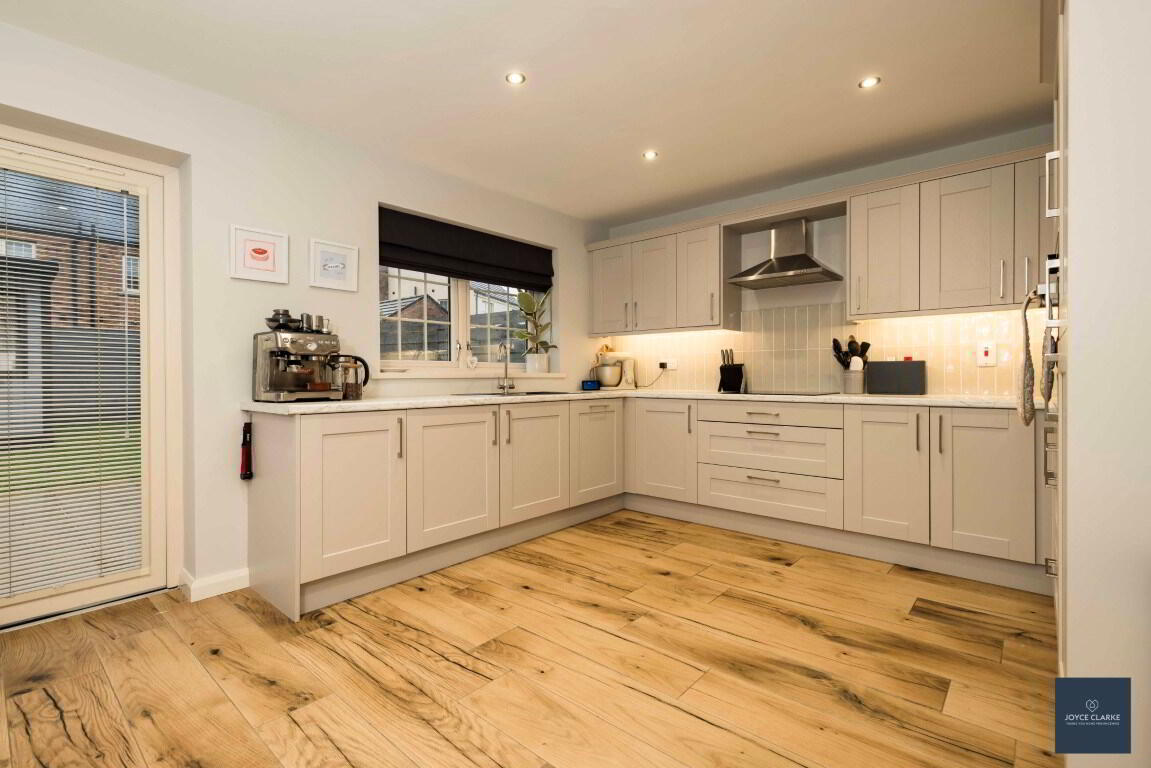 This is a great opportunity to purchase an "A" energy rated property ensuring maximum efficiency throughout the home! This beautifully presented semi detached home is brimming with high end finishes inside and out! Relax in the spacious living room, with multi fuel stove and beam mantle detail as the focal point, whilst the front aspect is towards the Green within the development. The kitchen is open plan to dining with an excellent range of high and low level storage units, complimented by an array of integrated appliances. Patio doors lead out onto the garden. A WC completes the ground floor. Upstairs you will find three well proportioned bedrooms, master with en suite shower room. The family bathroom comprises of a modern four piece suite to include separate shower and bath. Outside there is a fully enclosed garden laid in lawn to the rear. A paved patio area provides a welcoming space for entertaining. This sale includes a bespoke insulated garden room ideal for home office or recreation area. This has been tastefully finished and benefits from power, heat and lighting. Parking is via the tarmac driveway to the side. This beautiful home truly must be seen to fully appreciate just how good it is!