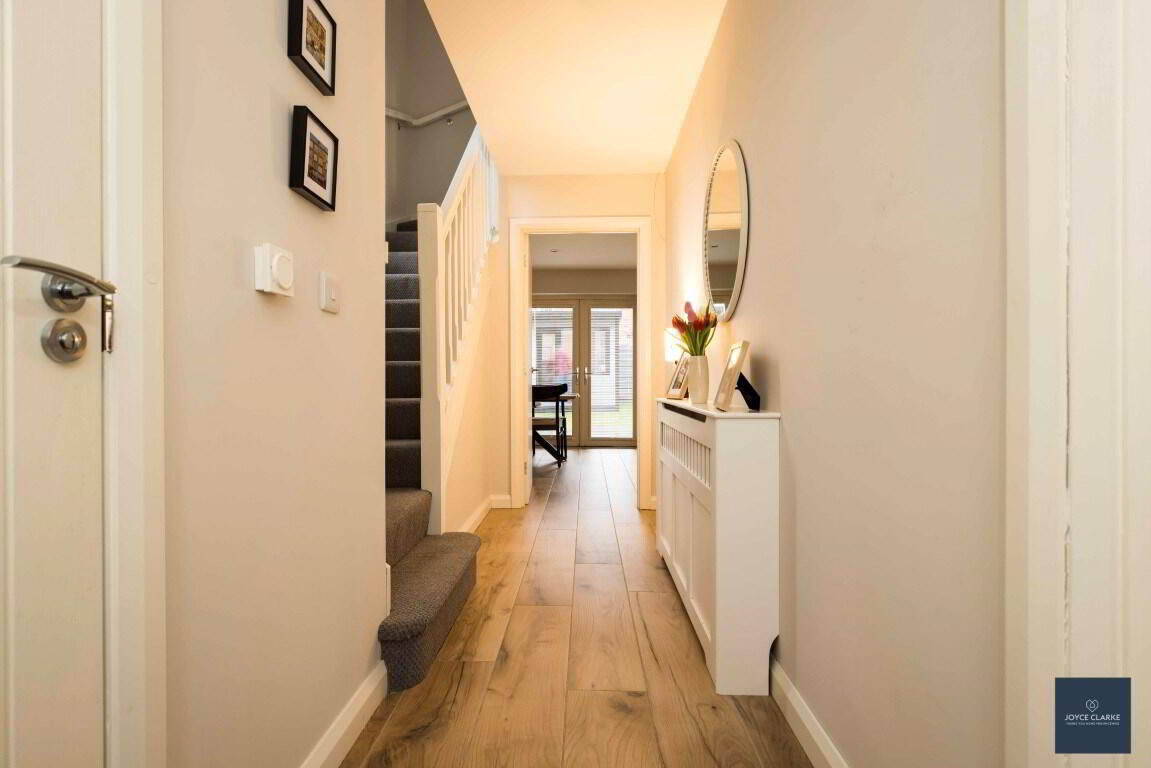 ENTRANCE HALLComposite entrance door with glazed panel. Wood effect tiled flooring. Single panel radiator.