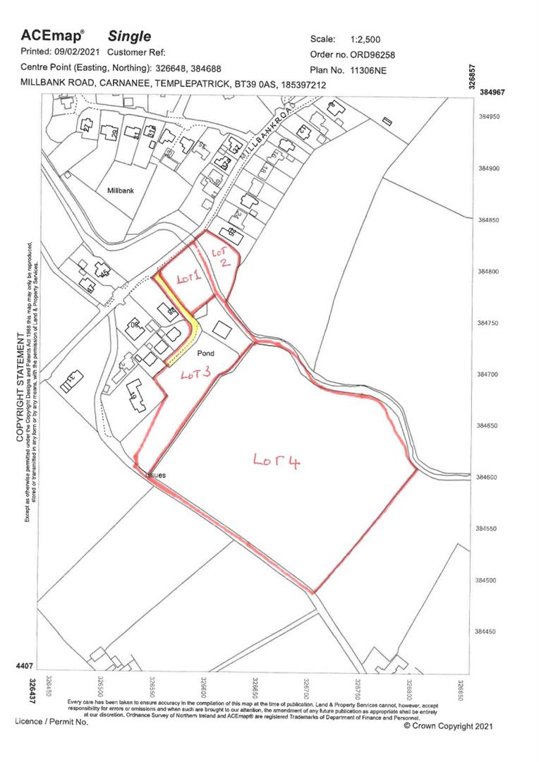 8.77 acres of excellent agriculture land in one field with direct frontage onto Millbank Road East, Templepatrick. As illustrated in Lot 4 on map. (Lot's 1,2 and 3 are available in individual or collective lots).