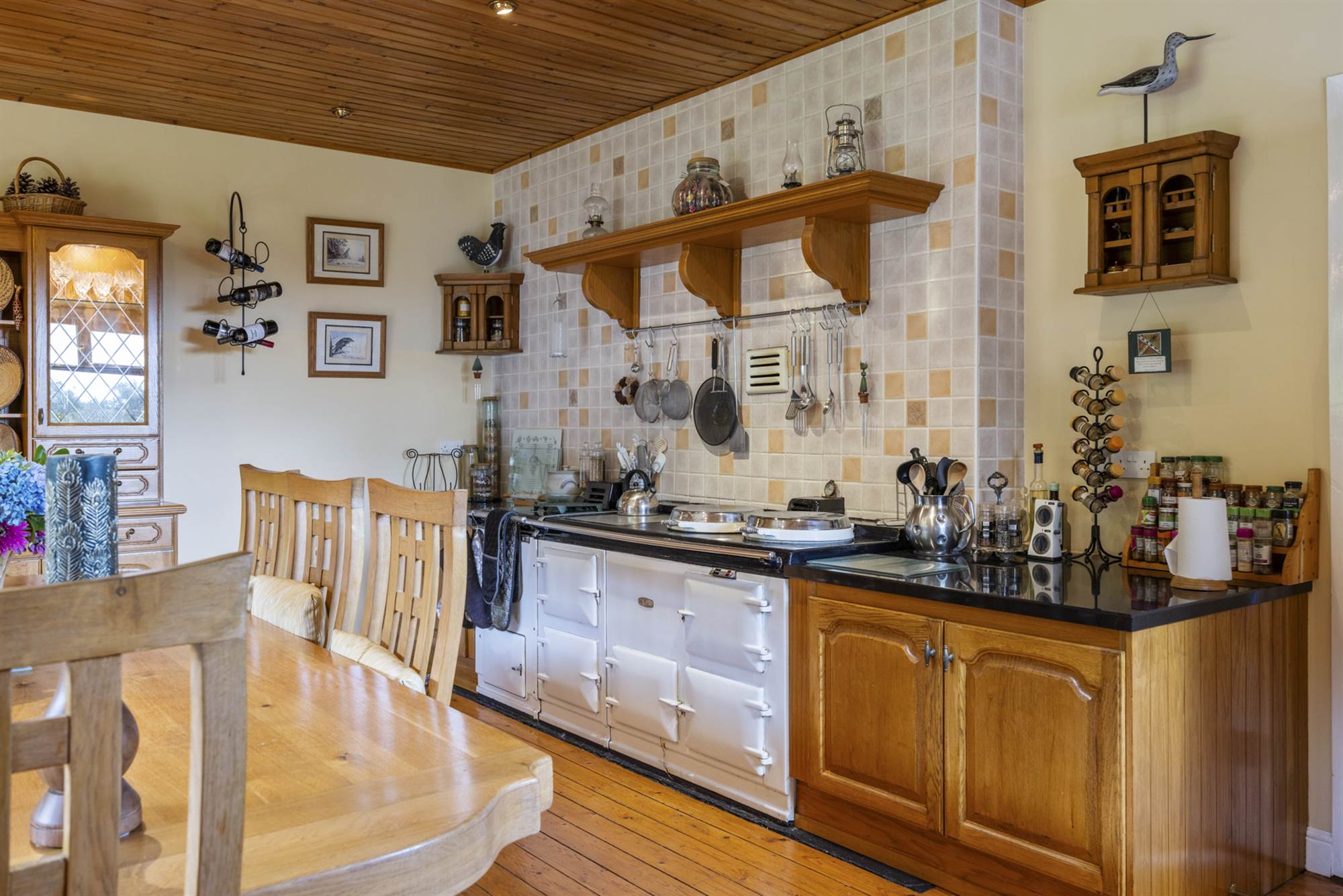 High and Low Level units, Aga Range, inset sink, 4 ring hob, electric oven, integrated dishwasher, part granite worktops