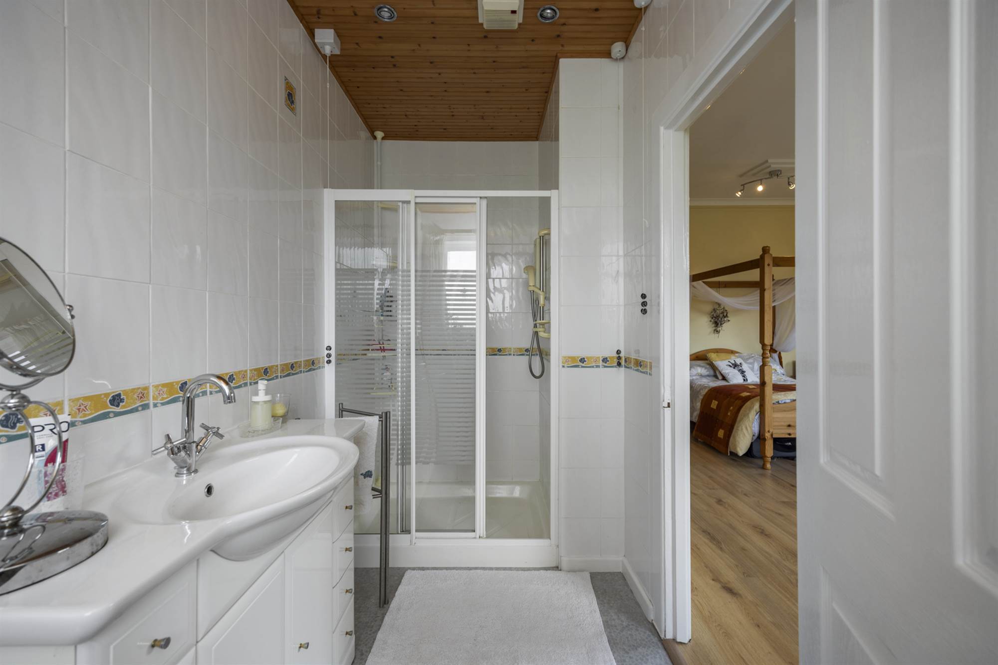 Fully Tiled Shower Enclosure, low flush WC, wash hand basin