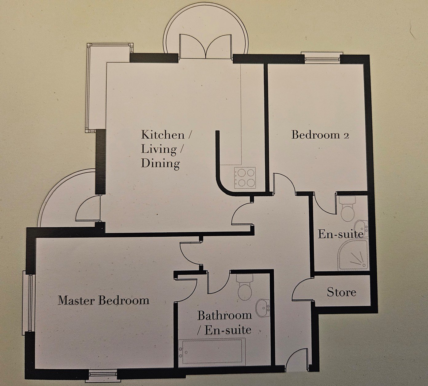 This 976 sq ft first floor apartment comprises of a spacious kitchen/living/dining area with two balconies, two double bedrooms both with ensuites and large storage cupboard accessed from the hallway. A feature of the apartment is the Jack & Jill style bathroom with a door leading to the hallway and the other to the master bedroom. The heating is tanked gas with the boiler newly installed. The development is accessed through secure gates and the apartment has one allocated parking space.