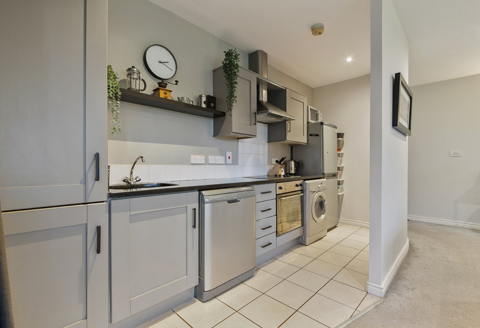 Range of high and low level units, granite worktops, under bench electric oven, 4 ring ceramic hob, stainless steel extractor fan, plumbed for dishwasher and washing machine, space for fridge, inset stainless steel sink unit, Vaillant gas boiler, access to twin balconies