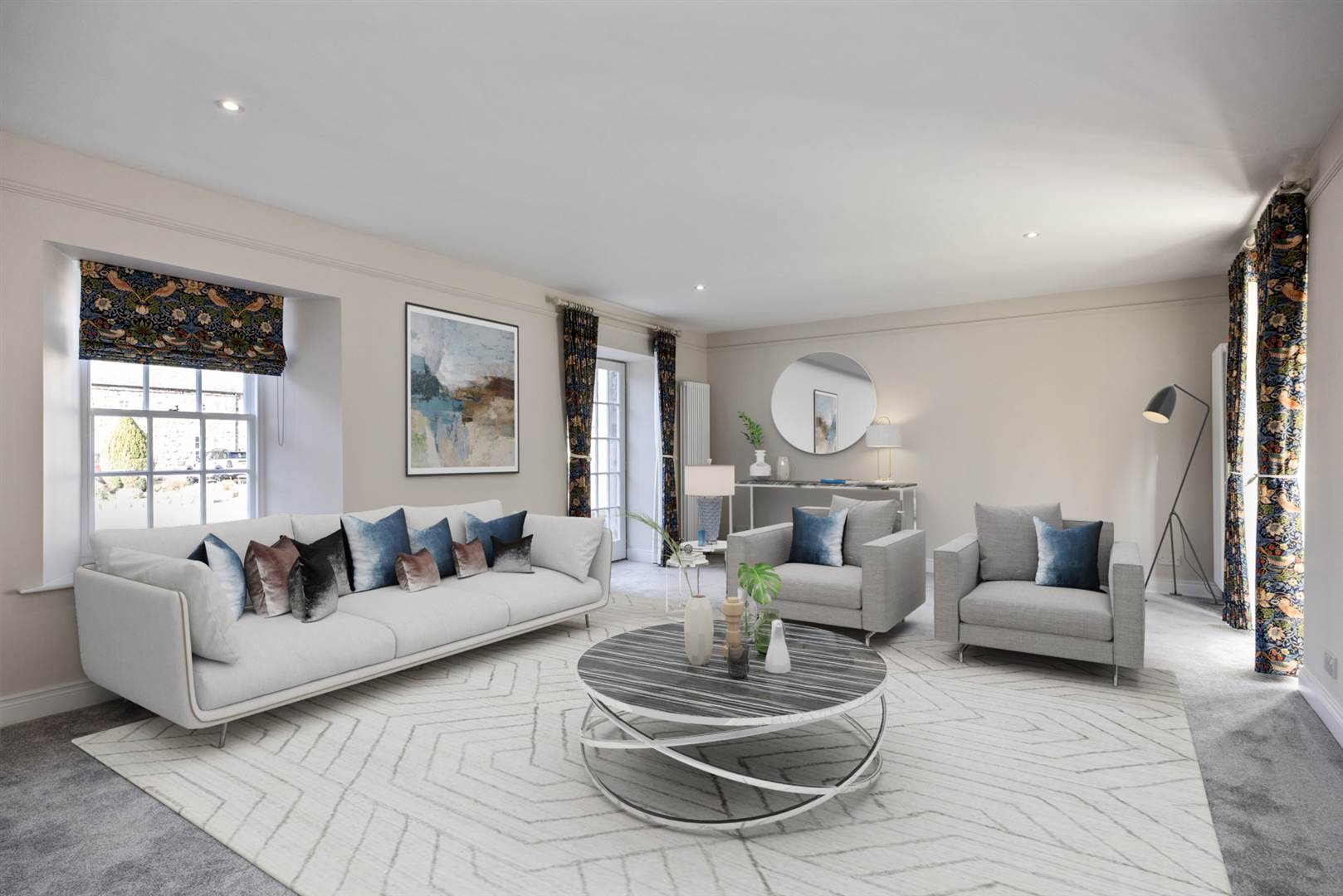 Dual aspect drawing room opening to dining and dual access to both the courtyard and private walled garden
