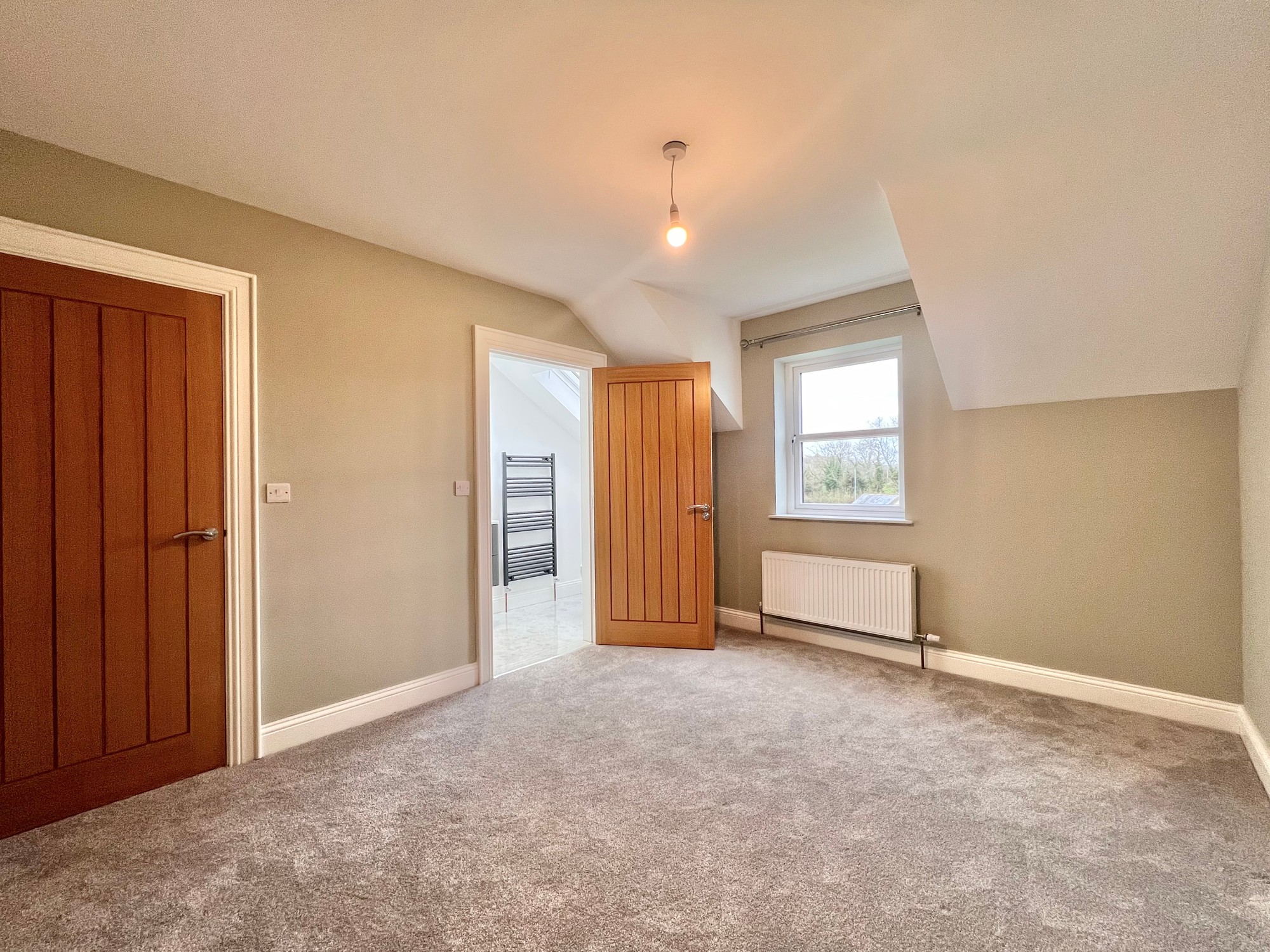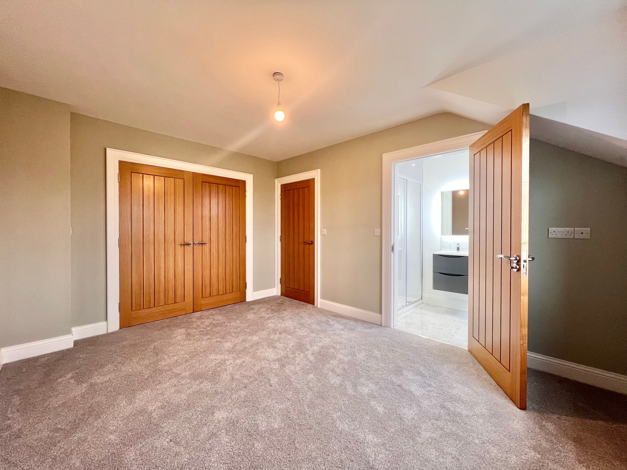 A bright and spacious rear facing bedroom with luxurious carpet flooring, built in wardrobe. En-Suite with contemporary three piece white suite comprising of wc, whb and vanity unit, walk in power shower with rainfall shower head, illuminated mirror point, feature towel rail, tiled floor.