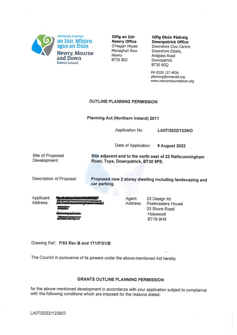 Building Site Adjacent To, The North East Of 23 Rathcunningham Road, Toye, Killyleagh, BT30 9PE