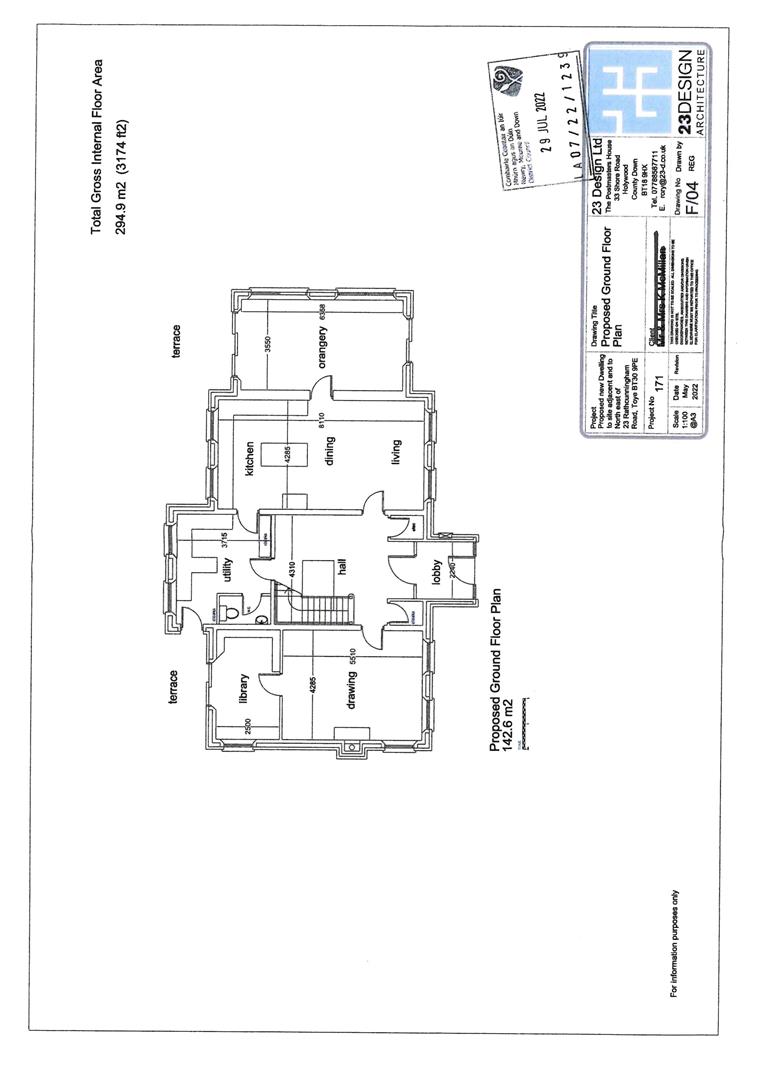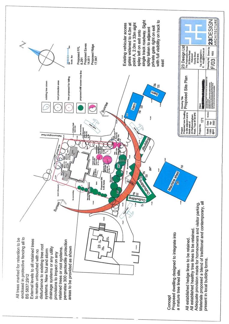 The site has received outline planning permission for a two storied dwelling including landscaping and carparking. An indicative plan was submitted to the planning service for a 3174 Sqft detached residence which is approved (not part of the original application) could be located on the site.