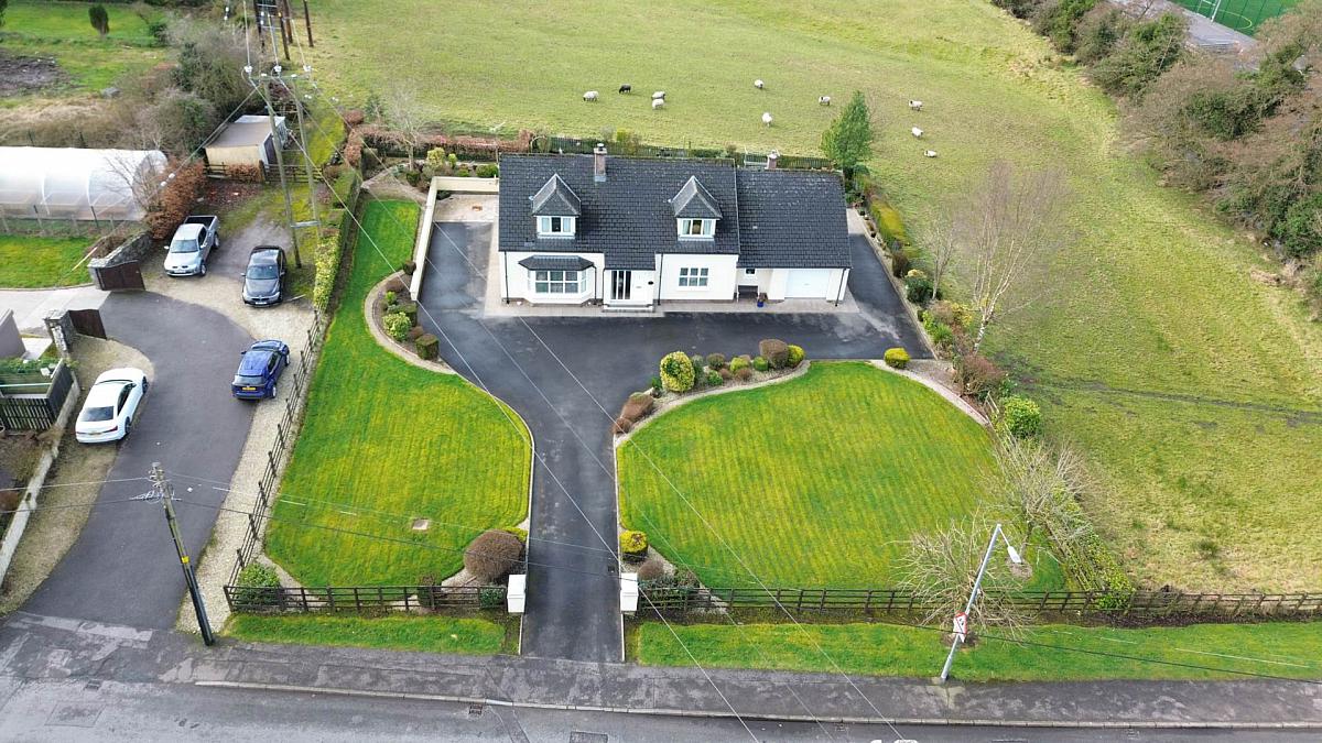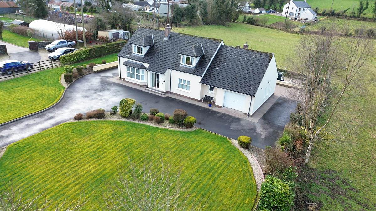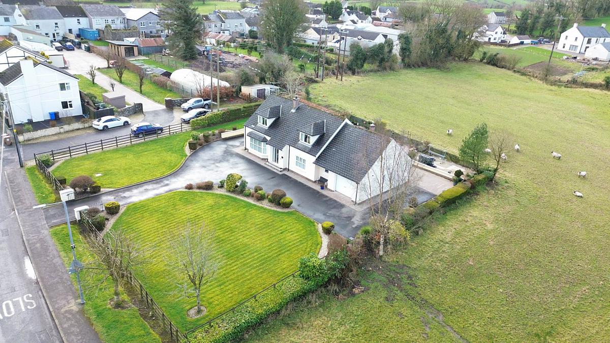 A rare opportunity to acquire a substantial 2,220 sq. ft. detached residence with the option of 2.5 acres of zoned land, positioned in a peaceful setting on the edge on edge of Trillick Village.