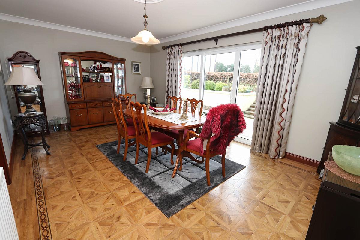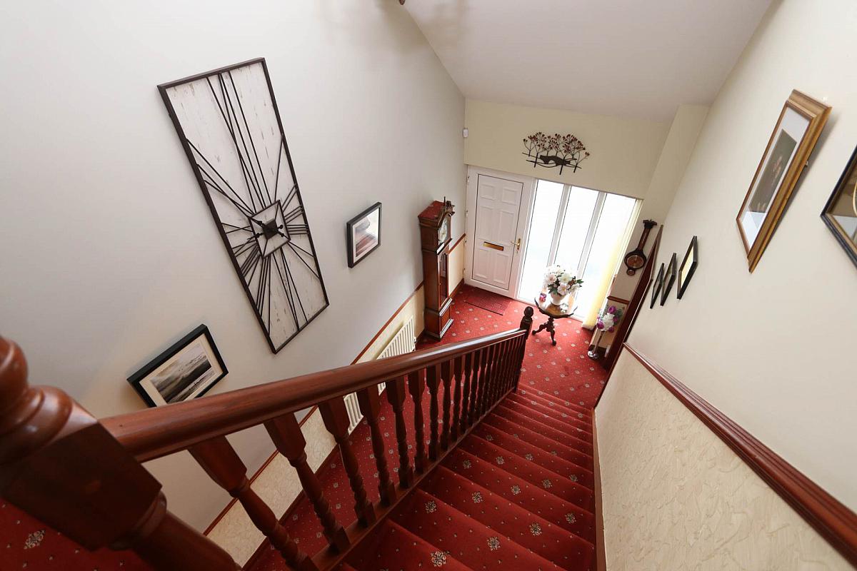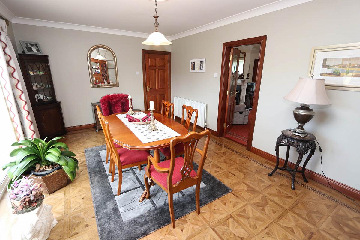 The ground floor layout includes kitchen /dining, large living room with a stove, separate dinning room that could be a fourth bedroom if required. There is a large bedroom and a family bathroom on the ground floor. Off the kitchen you have a utility room and through there you access a storeroom or could be used as an office, lastly you have an internal garage.