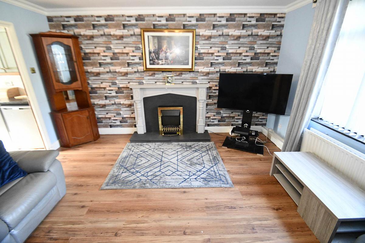 Laminate flooring,feature fireplace, cornice celing
