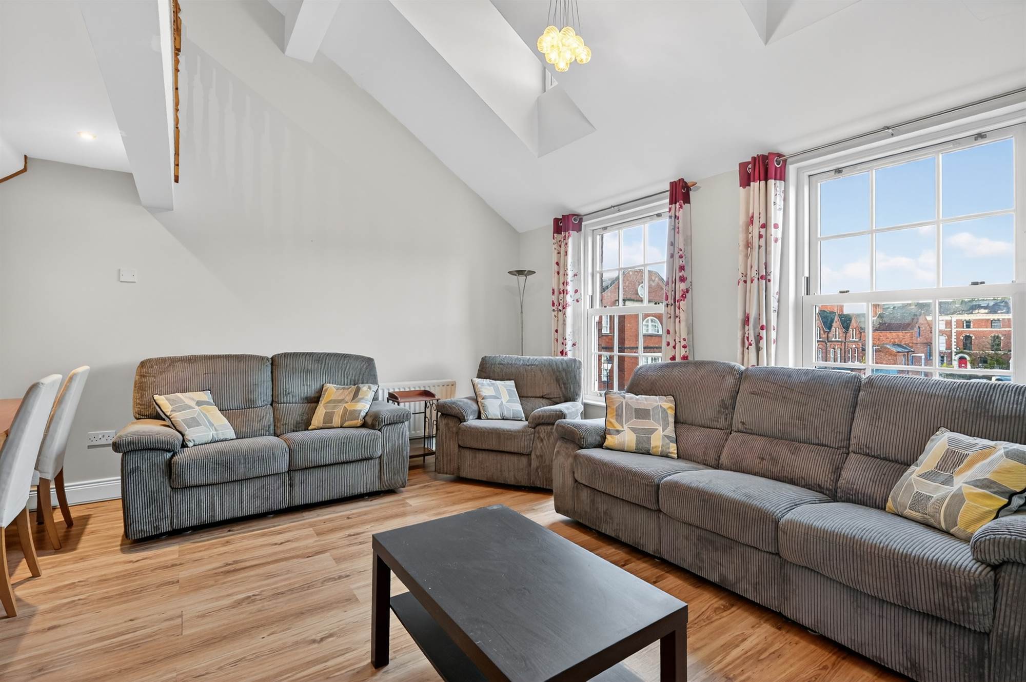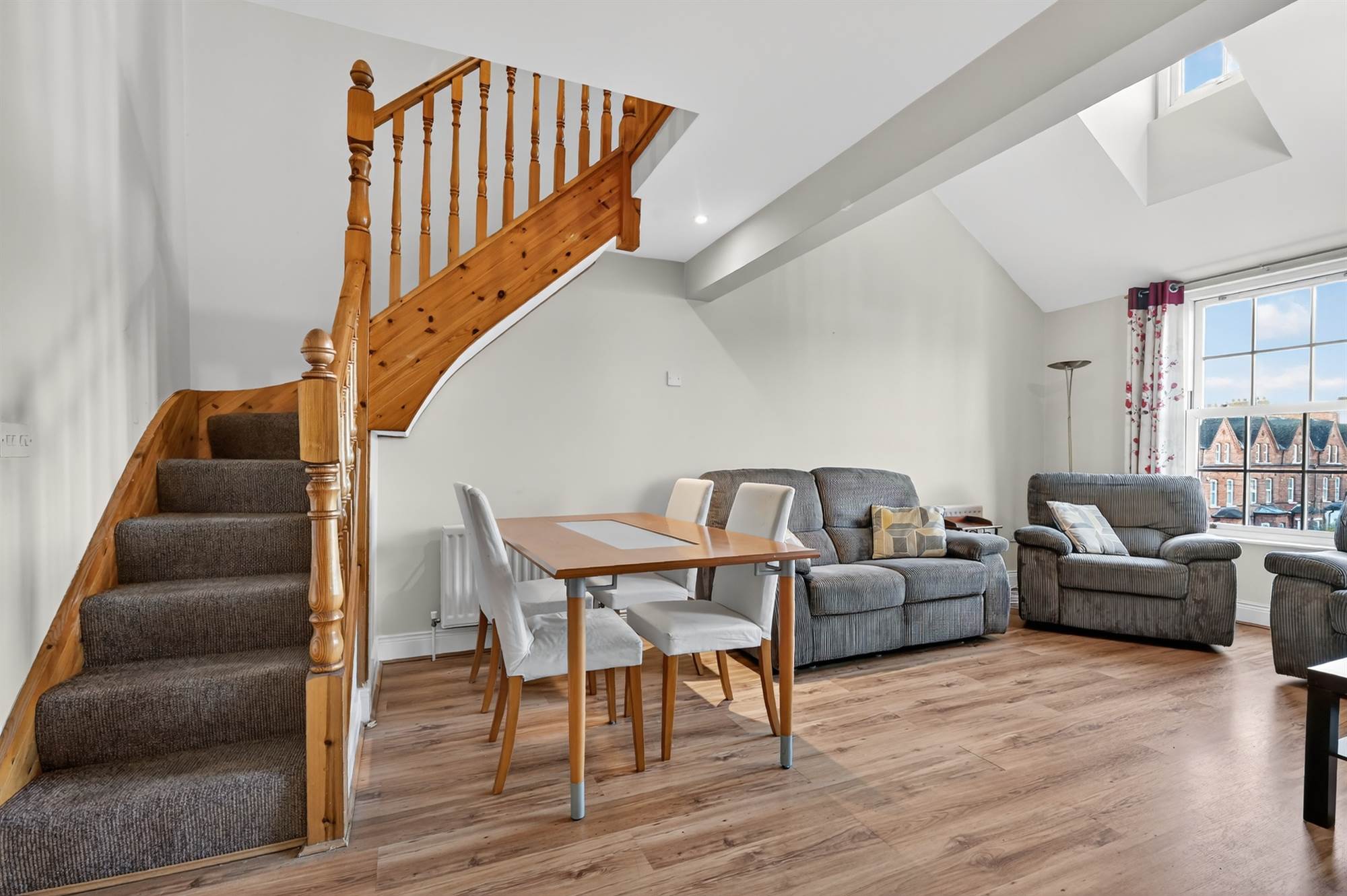 The well-proportioned accommodation comprises an entrance hall, a spacious living room, dining area and open plan kitchen area with an extensive range of built-in kitchen units with integrated appliances. The apartment benefits from a first floor mezzanine level ideal for an office or second living area. Two good sized bedrooms, the principal bedroom benefits from an ensuite shower room, and a main bathroom are in turn complemented by PVC framed windows, Phoenix Gas central heating, secure entrance gates and a convenience that will have wide ranging appeal.
