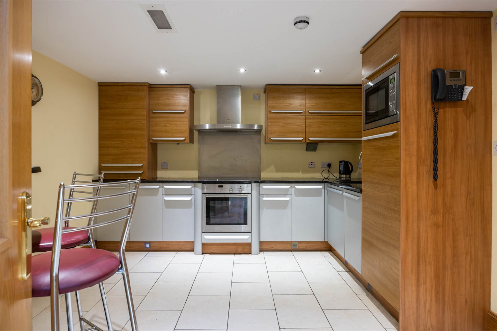 Full range of high and low level units, polished granite work surfaces, 4 ring ceramic hob and under oven, stainless steel eye level oven, ceramic tiled floor.