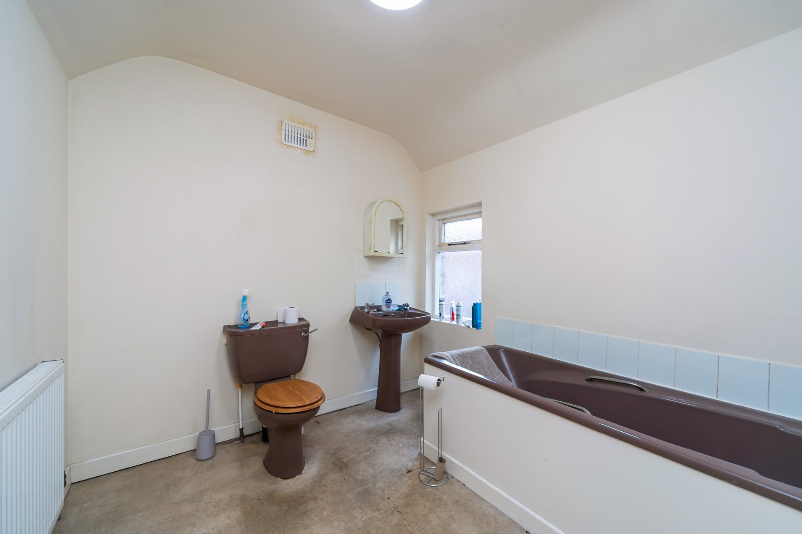 Low flush WC, pedestal wash hand basin, bath