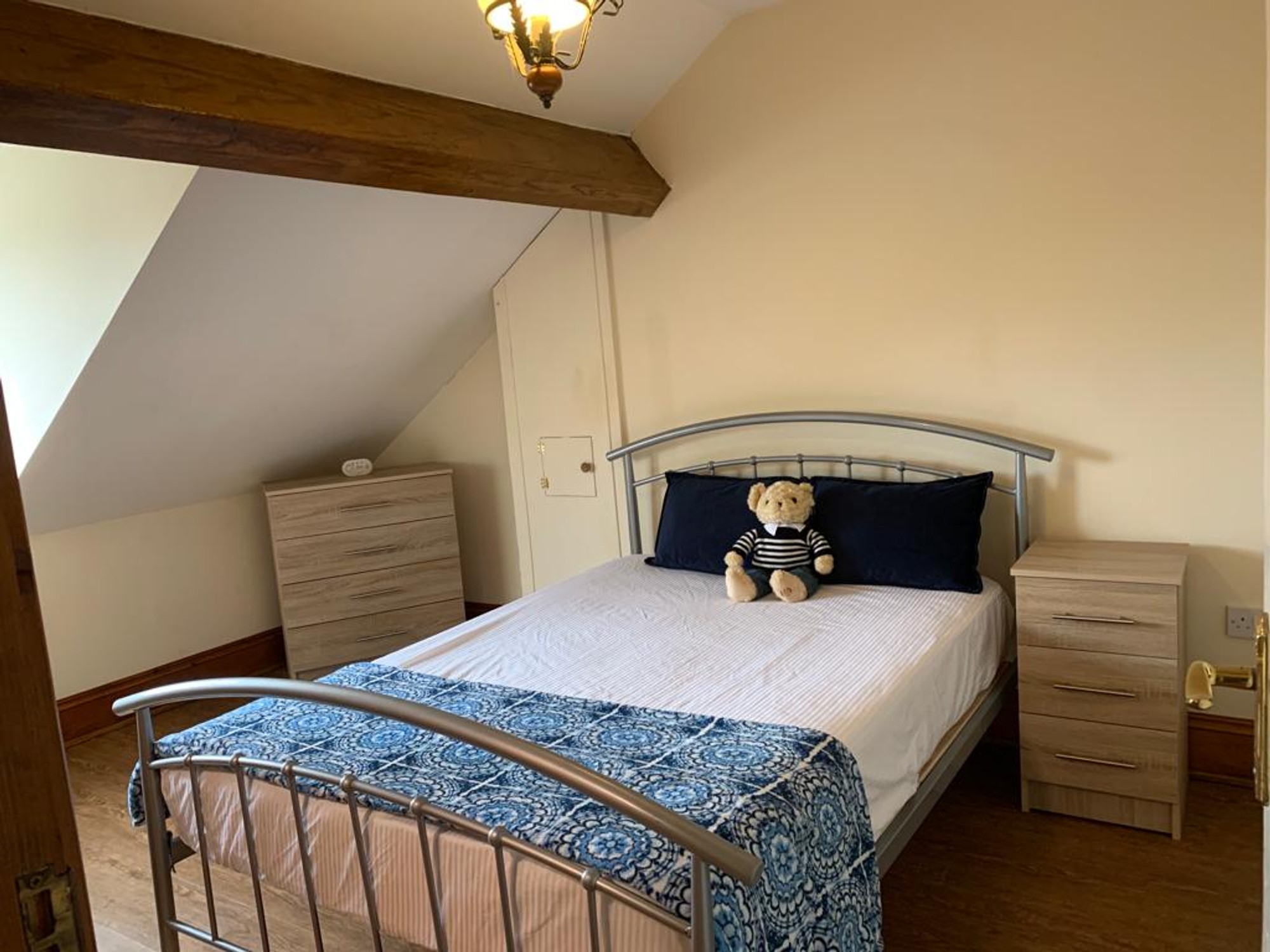 Separate is the bedroom with a double bed and ample space for storing clothes and other belongings. Connected to the bedroom is the ensuite bathroom.
