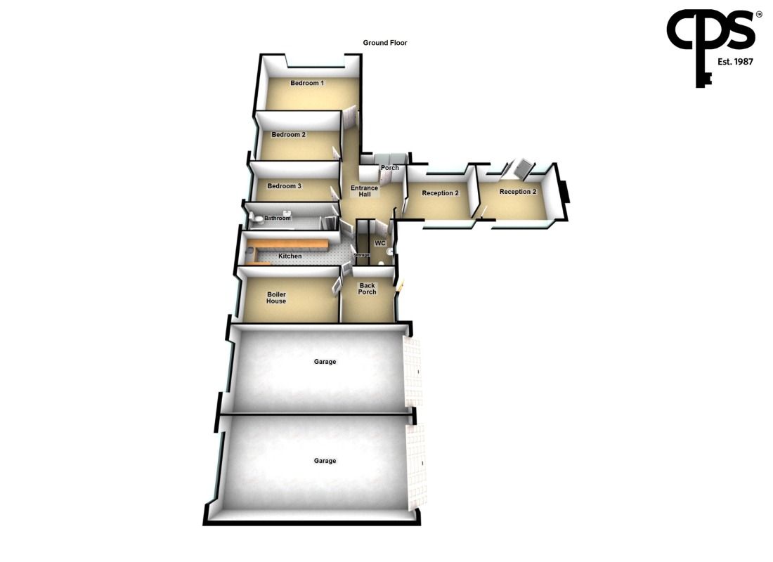 - Fitted kitchen with access to double garage and boiler house