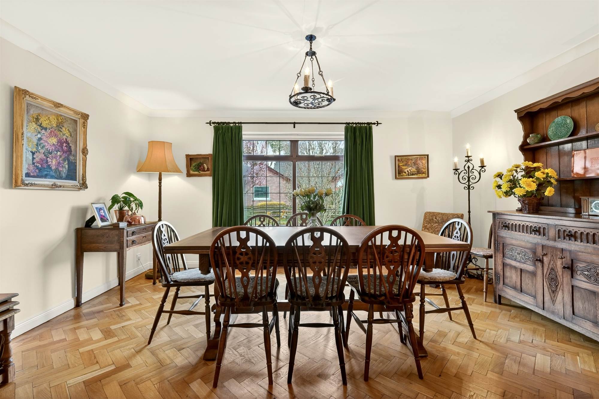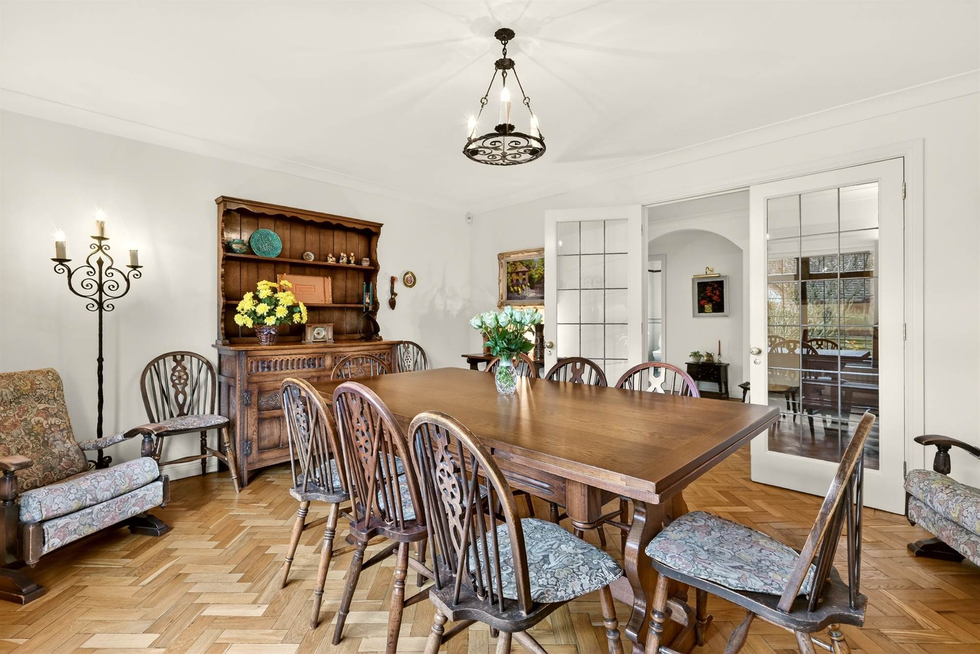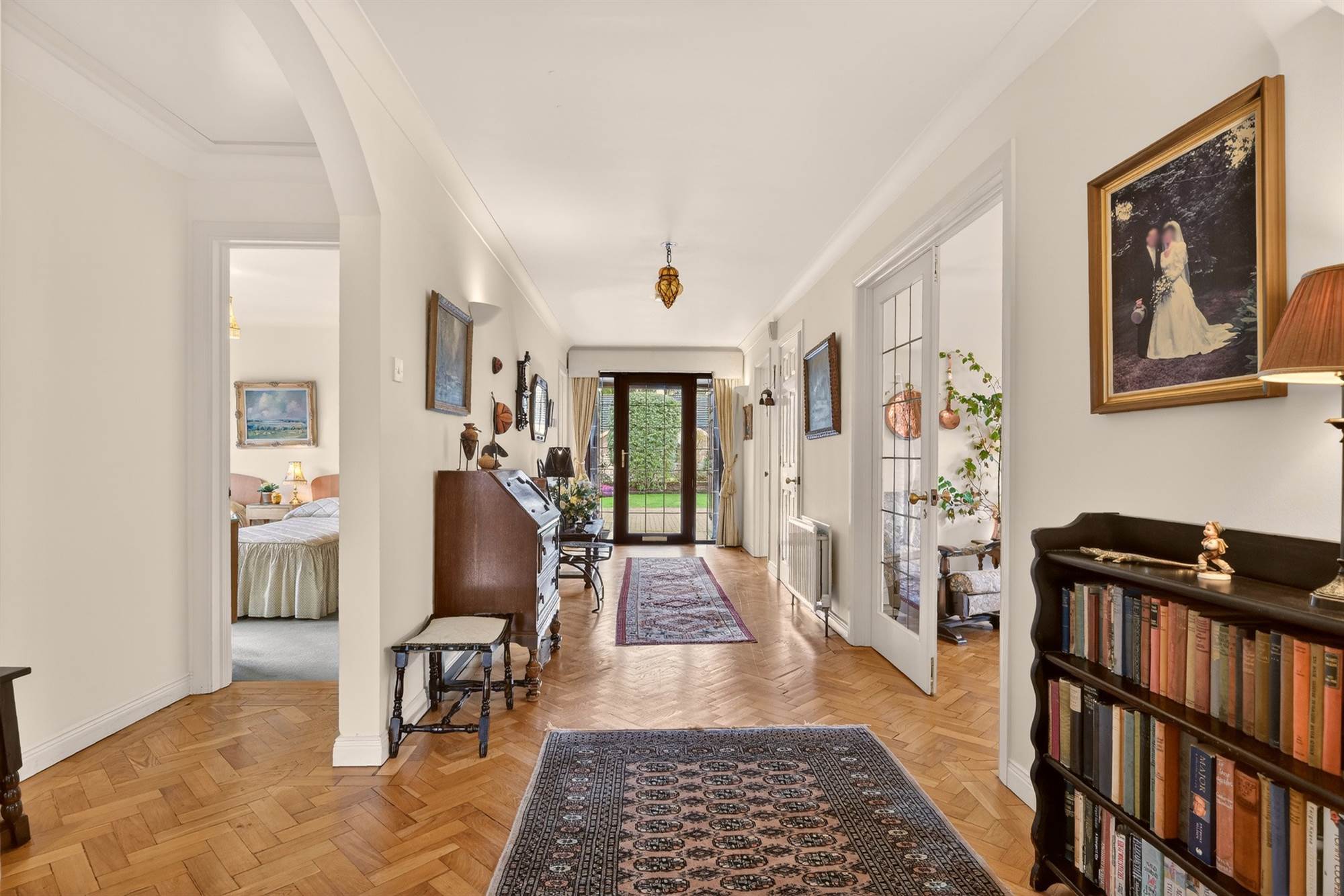 Herringbone floor, cornice ceiling, cloaks cupboard and store room.