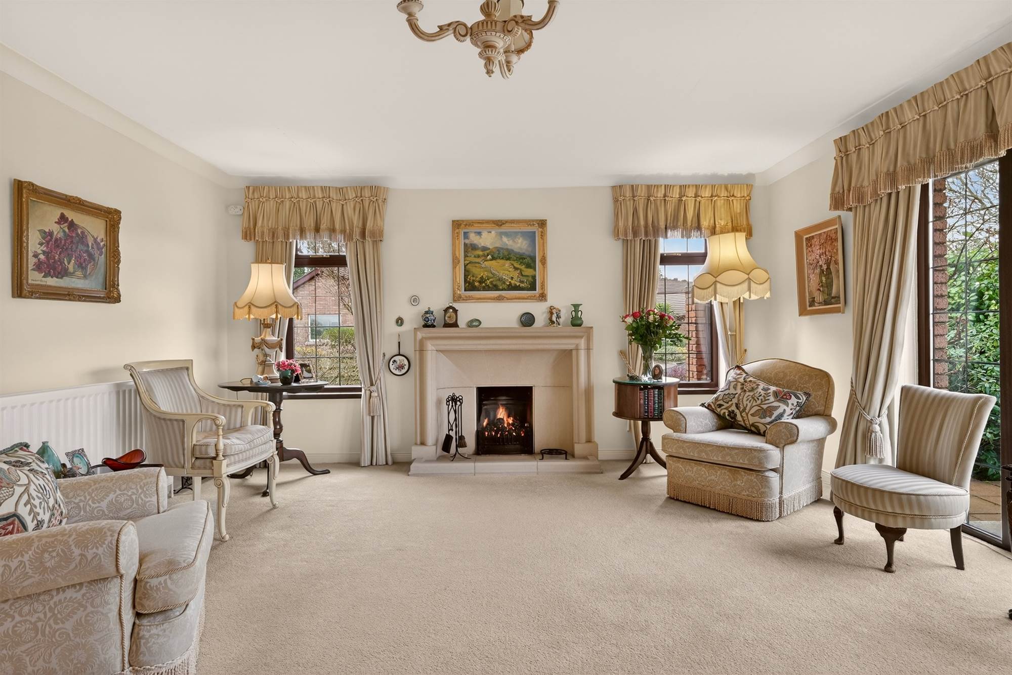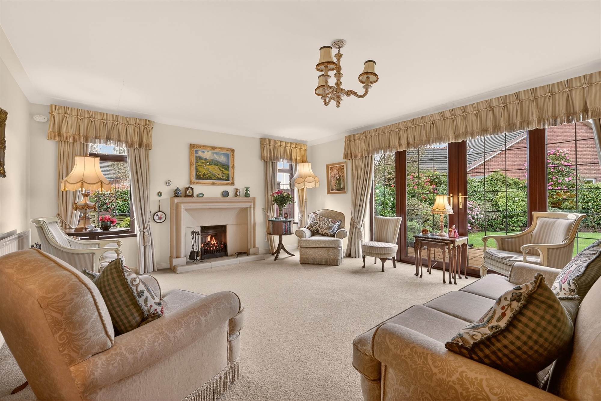 Generous Lounge with Feature Fireplace and Access to Rear Gardens