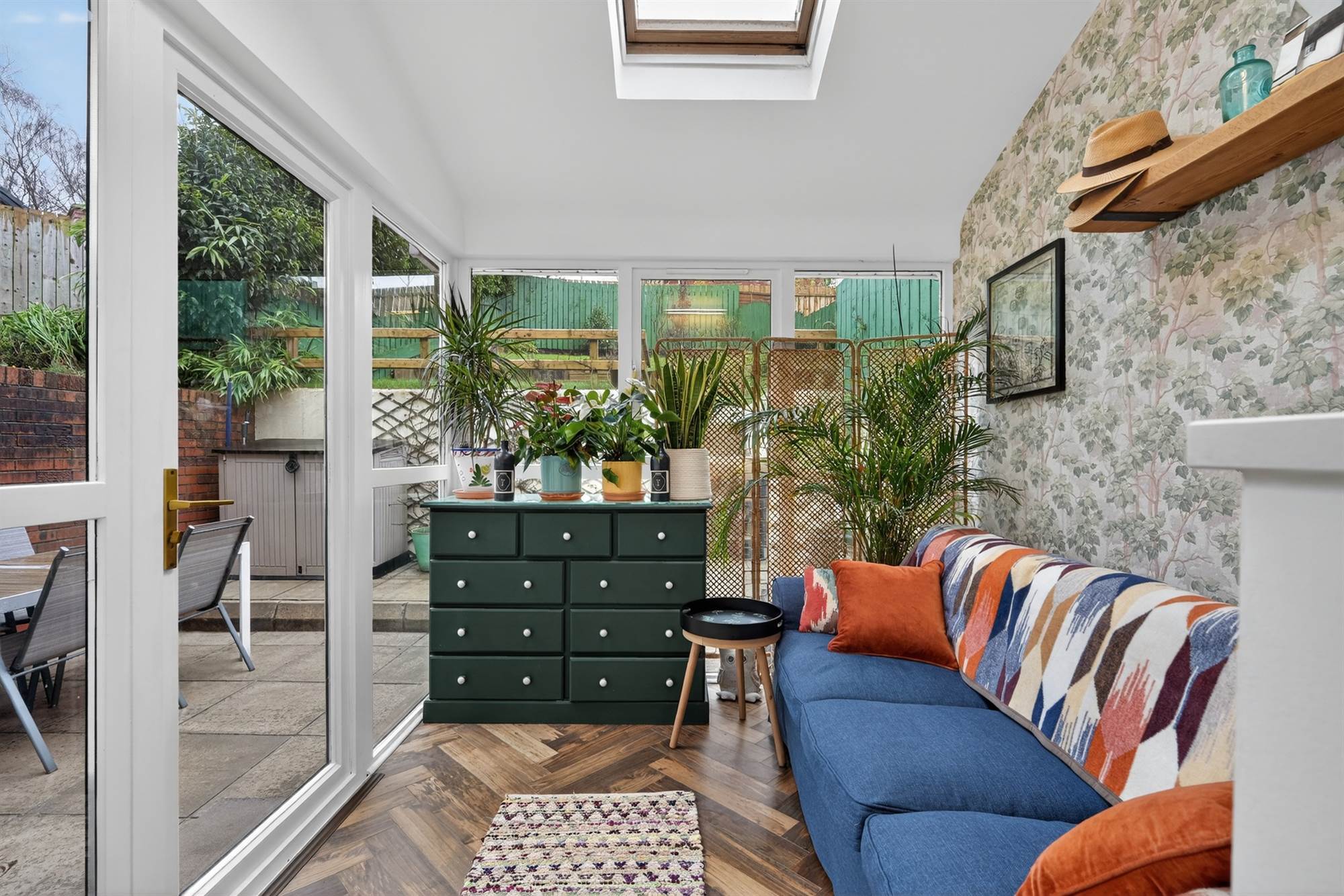 Modern Fitted Kitchen with Range of Appliances Open Plan to Bright Sun Room with Access to Rear Garden