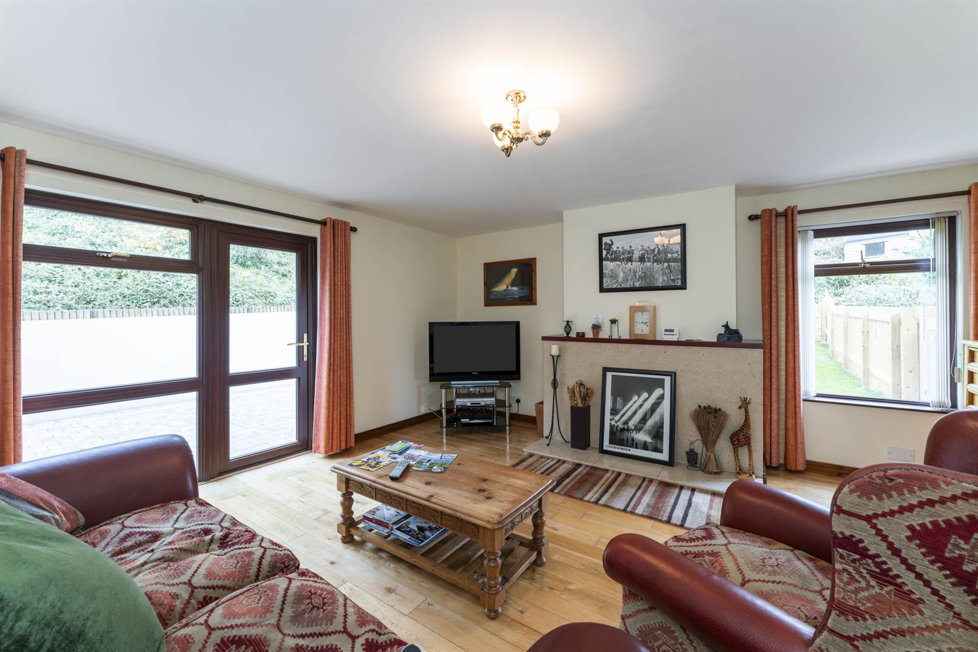 Feature Fireplace, double doors to rear garden