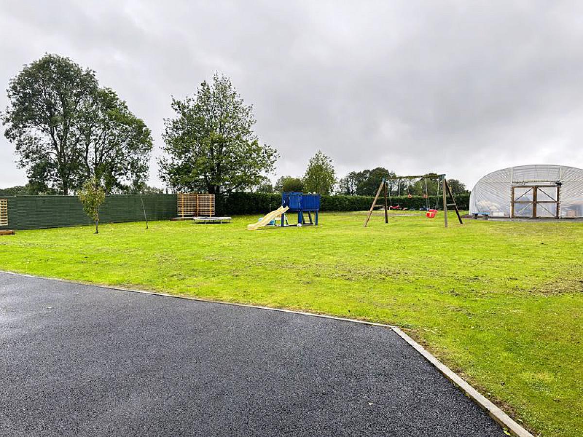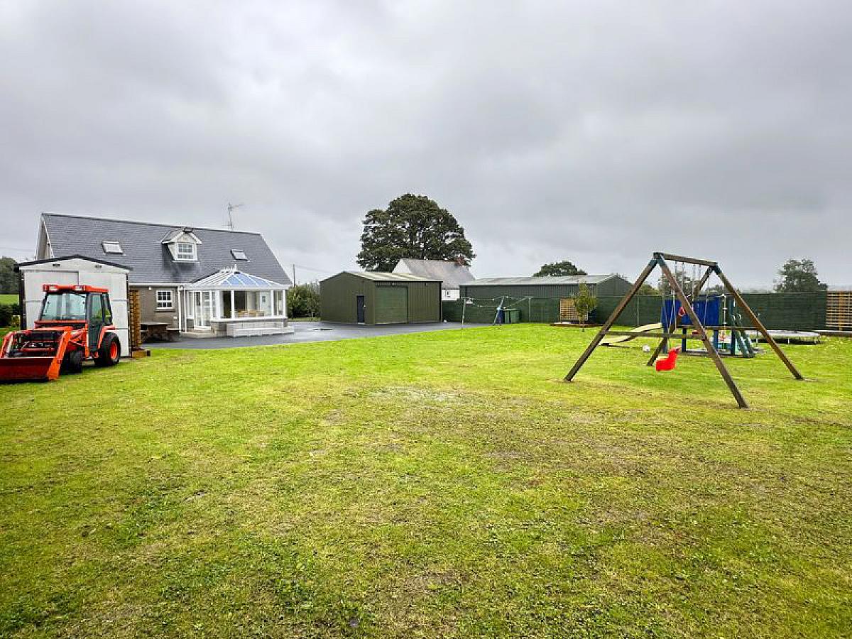 Fully enclosed site extending to approx. 0.7 acres with hedging and fencing to perimeter, pillared entrance with remote lighting and electric gates to tarmac driveway with parking to front, side and rear. Outside water tap and lighting, garden in lawn leading to a polytunnel for keen home gardeners.