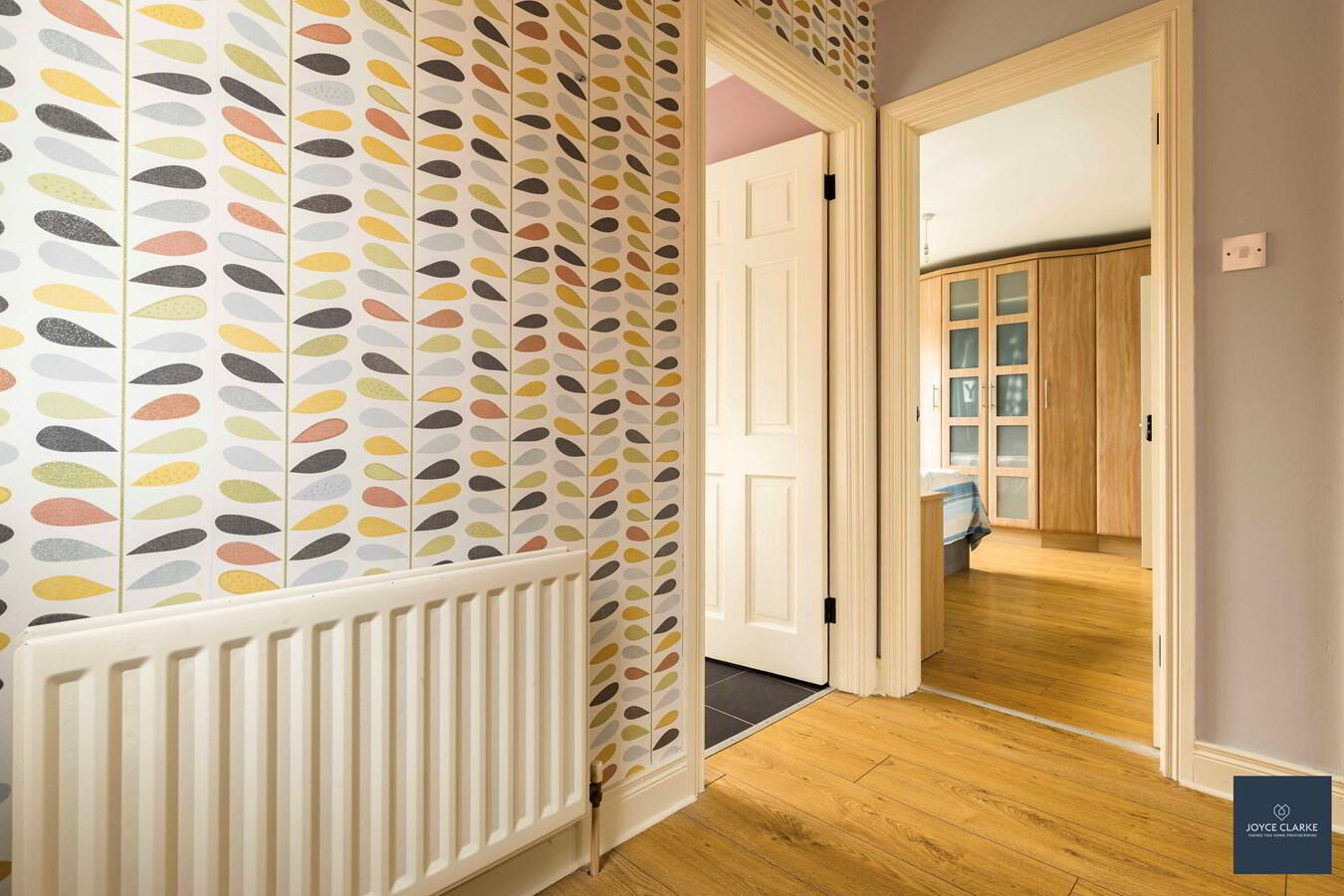 Wood effect laminate flooring. Double panel radiator. Window. Access to hot press and attic.