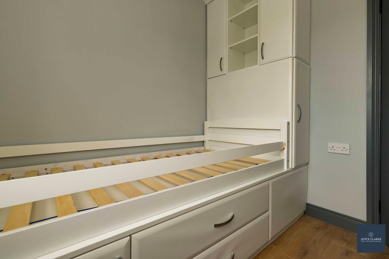 Fully fitted bedroom suite including single bed, with drawers and fitted wardrobes. Double panel radiator. TV point.