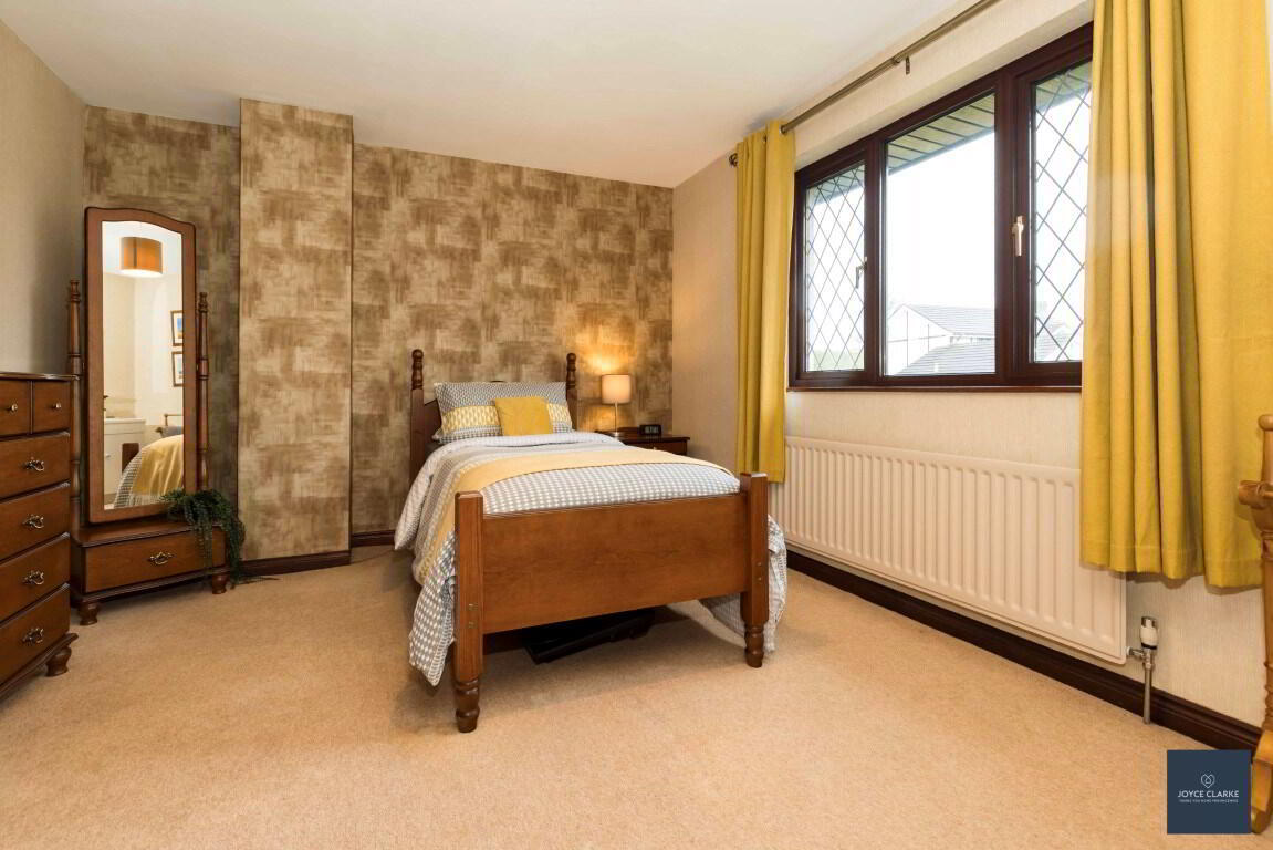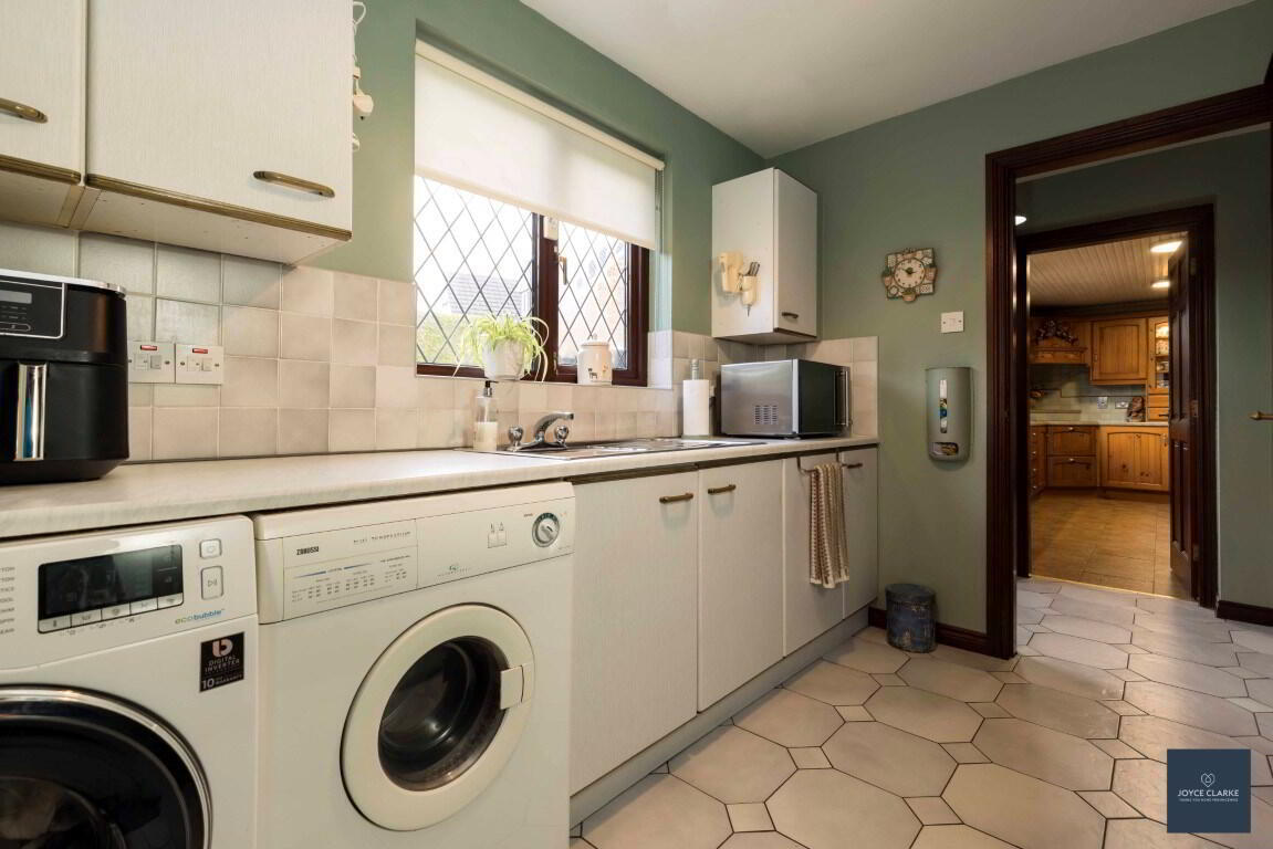 Tudor Lodge is one of the most highly regarded developments in the beautiful village of Waringstown, and Number 11 is set upon a prime corner plot offering both generous gardens and great privacy for you to enjoy. Step inside this immaculately kept detached home and you will be impressed by the generous room sizes and great use of natural light throughout the home. This is a uniquely designed property comprising of five double bedrooms, master with en suite shower room and a range of built in furniture. The family bathroom comprises of a four piece suite with Jacuzzi style bath Relax in comfort in one of the three reception rooms ranging from impressive dual aspect lounge with multi fuel stove, or your choice of cosy snug which is also ideal for a home office or ground floor bedroom if required. The stylish kitchen has an excellent range of storage units with timeless solid wood doors, complimented by integrated appliances. This is a great sized room with plenty of room for a large table, or serve dinner up in the formal dining room , the choice is yours! The ground floor is completed by a spacious utility room with storage, and separate WC's. The double garage has an electric door, and is also access via the home. Enjoy sunny days in the well proportioned garden which has been completed with a pleasant mix of lawn, and paved patio. There is a bespoke garden room that lends itself to endless possibilities! To the front parking for multiple cars is via the tarmac driveway, with the property being wrapped around with mature plants and gardens. This home has all that any family could possibly require and more - early viewing highly recommended!