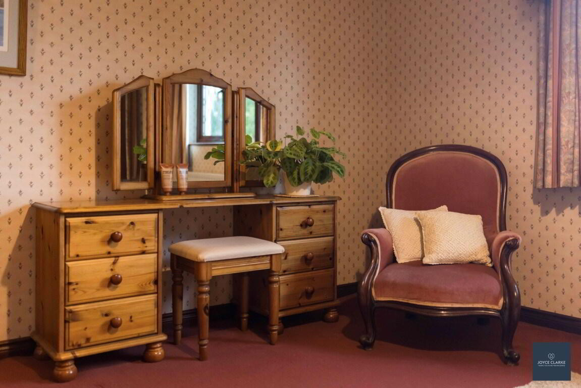 Rear aspect double bedroom. Wash hand basin with vanity cabinet below. TV and telephone points. Single panel radiator.