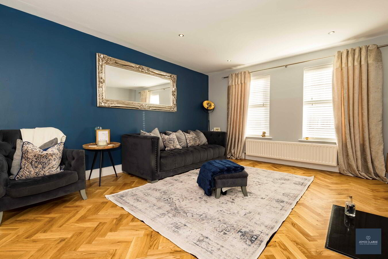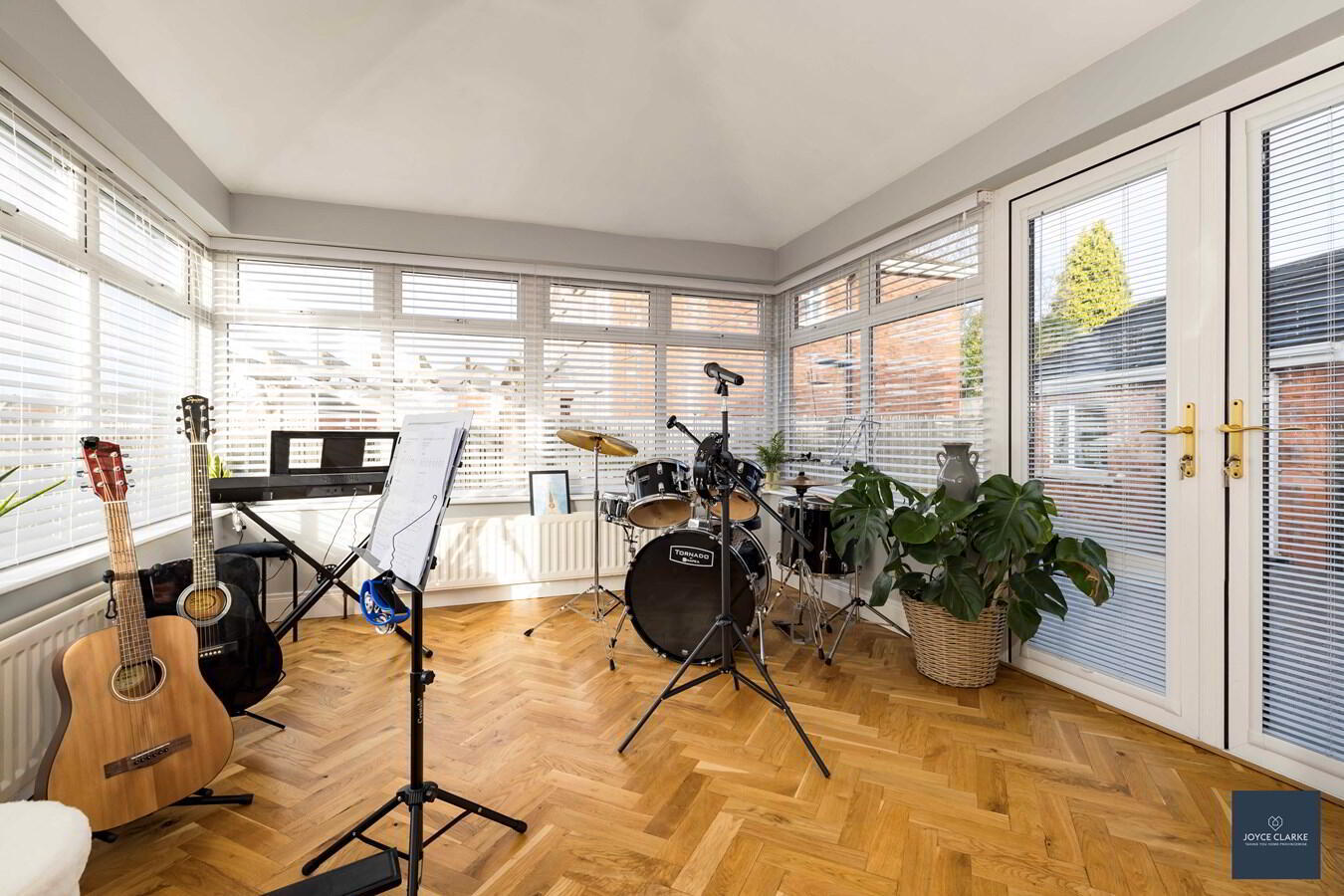 Herringbone wooden flooring. Two double panel radiators. Double patio doors leading out onto the rear garden.