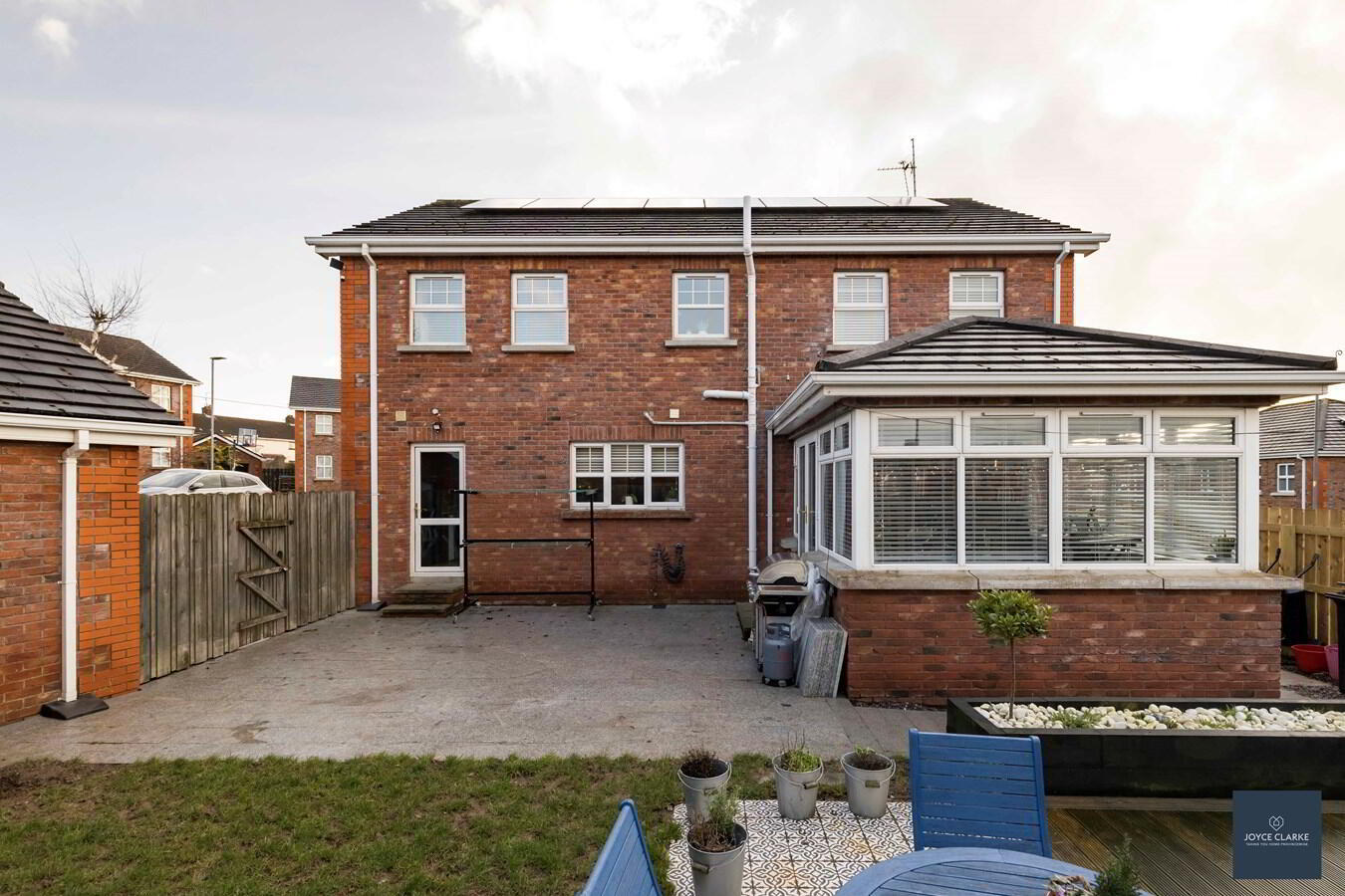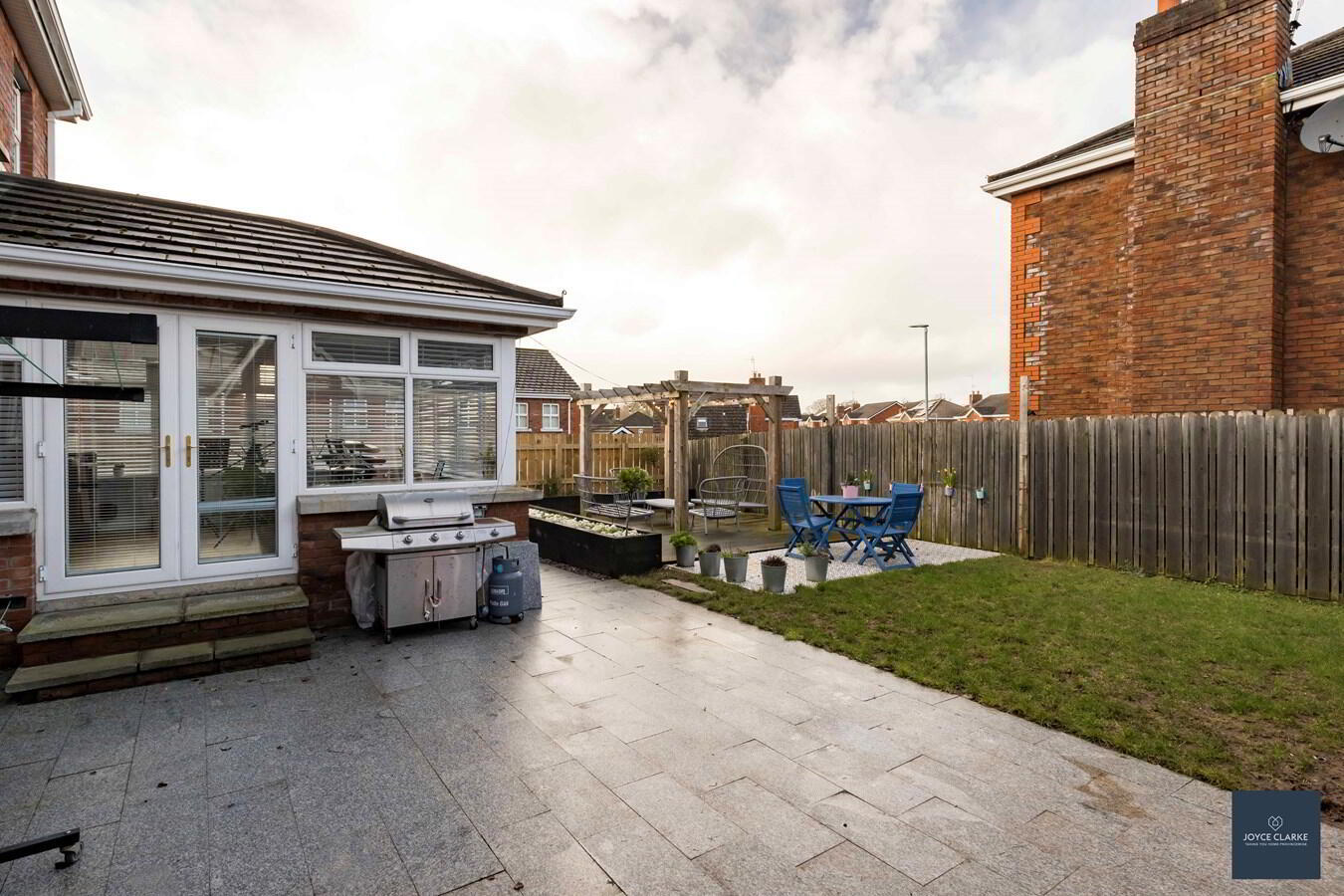 Fully enclosed, private rear garden with paved patio area, perfect for entertaining. Pergola with decking. Outside tap. Dual aspect gates leading onto the front driveway and side of house.