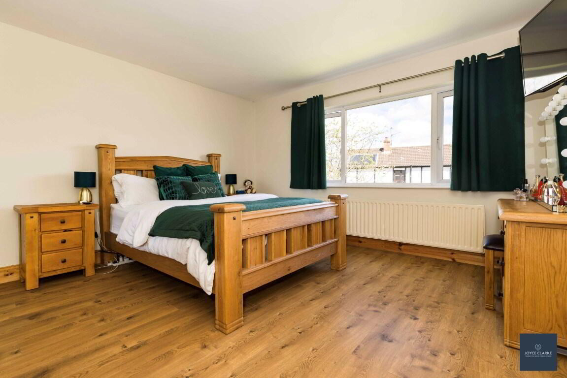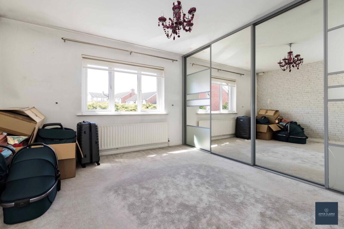 Rear aspect double bedroom. Carpeted. Single panel radiator. Built in storage closets. TV and power points.