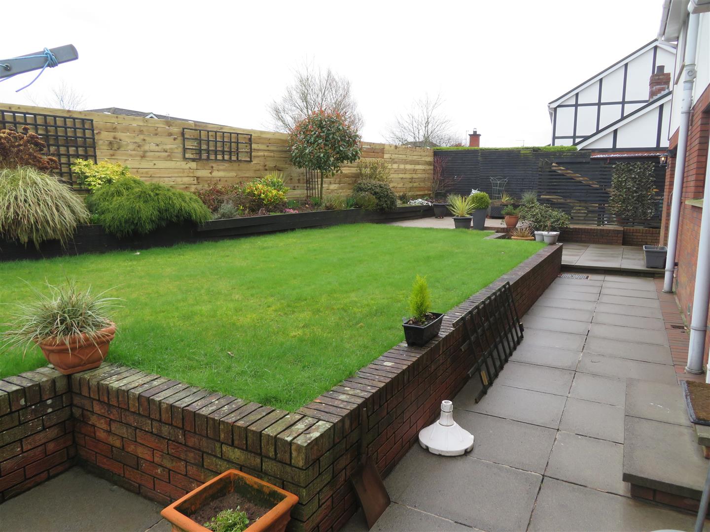 Large tarmac driveway with ample space for several cars. Front garden laid in lawn with mature planted shrub beds. Fully enclosed rear comprising lawn, raised patio and raised shrub beds.